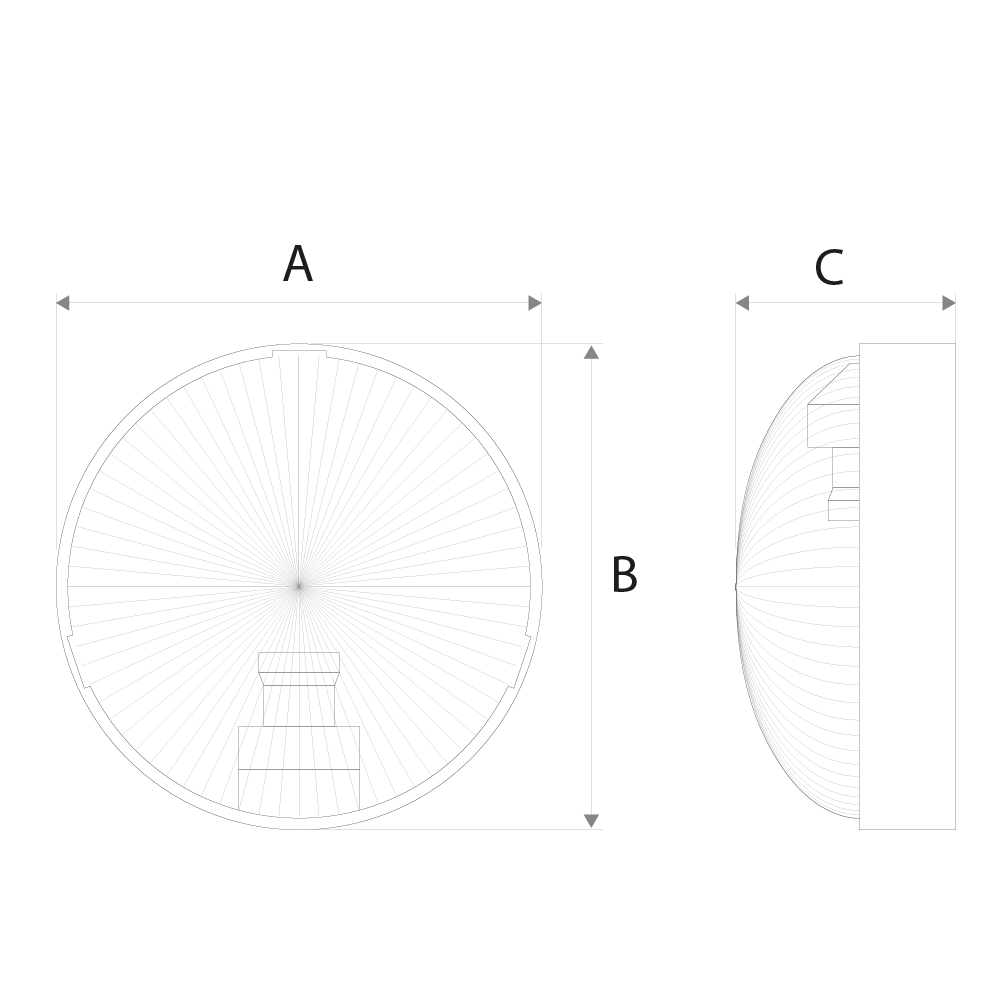 | Dimensões | 225mm (A) x 225mm (B) x 105mm (C) |