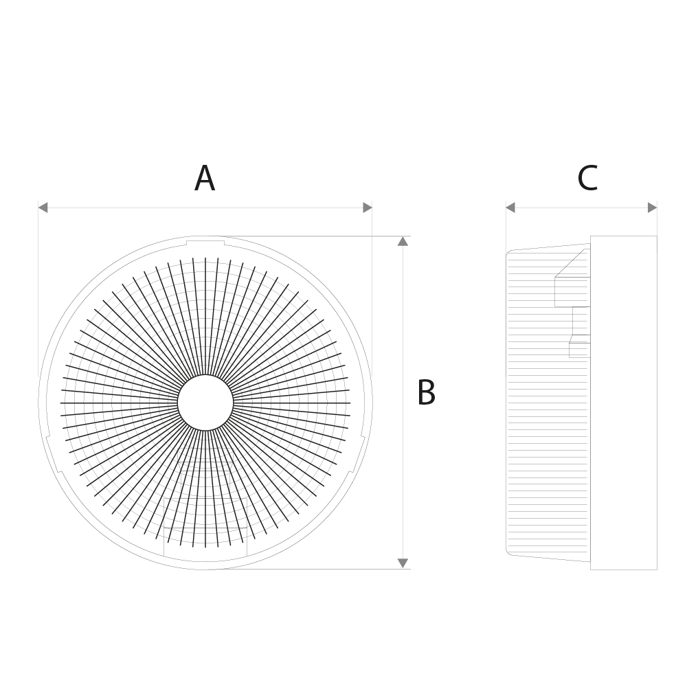 | Dimensões | 190mm (A) x 190mm (B) x 100mm (C) |
