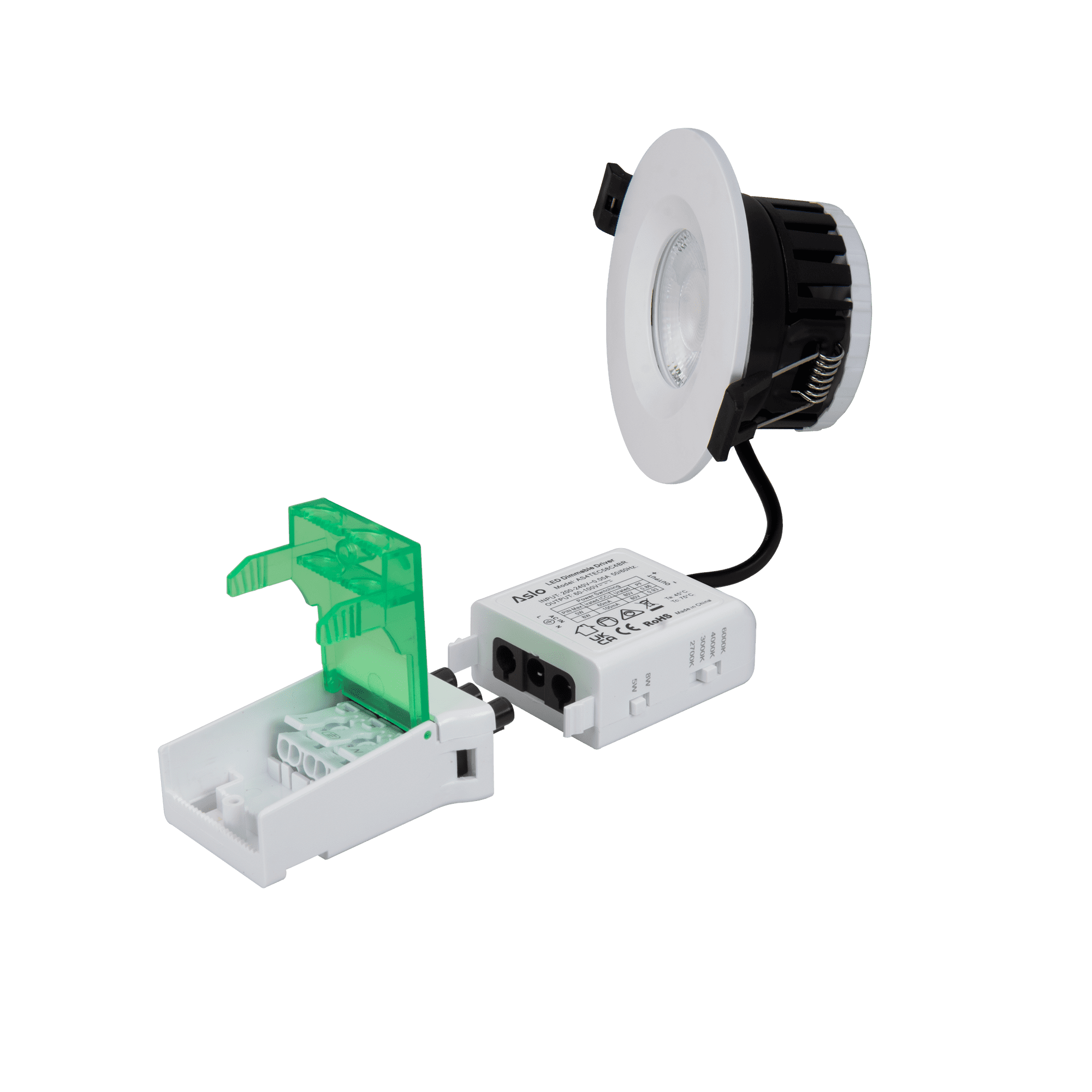 O Foco LED Dimável 4CCT da ASLO foi desenvolvido para oferecer a melhor experiência de iluminação, tanto em casa como no trabalho. Com um seletor de cor (4-CCT) incorporado, permite escolher entre luz quente (2700K), luz neutra (4000K) ou luz fria (6000K), garantindo a iluminação perfeita para qualquer ambiente. A potência pode ser ajustada entre 5W e 8W, oferecendo uma iluminação eficiente e adaptada ao espaço. Este foco é resistente e seguro, com proteção IP65 (resistente à água) e resistência ao fogo, o que o torna ideal para ambientes mais exigentes, como áreas externas ou locais com maior necessidade de segurança. A instalação é muito simples: basta ligar o conector rápido, tornando o processo rápido e seguro. Com a tecnologia "Sem Cintilação", o foco oferece uma iluminação suave, sem os incómodos piscos de luz. Para maior flexibilidade, o aro branco pode ser substituído por um aro em preto ou níquel, vendidos separadamente.