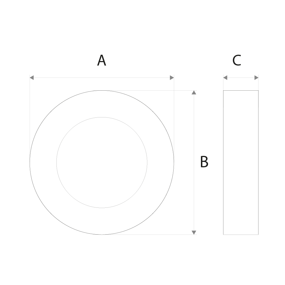 | Dimensões | 200mm (A) x 200mm (B) x 45mm (C) |