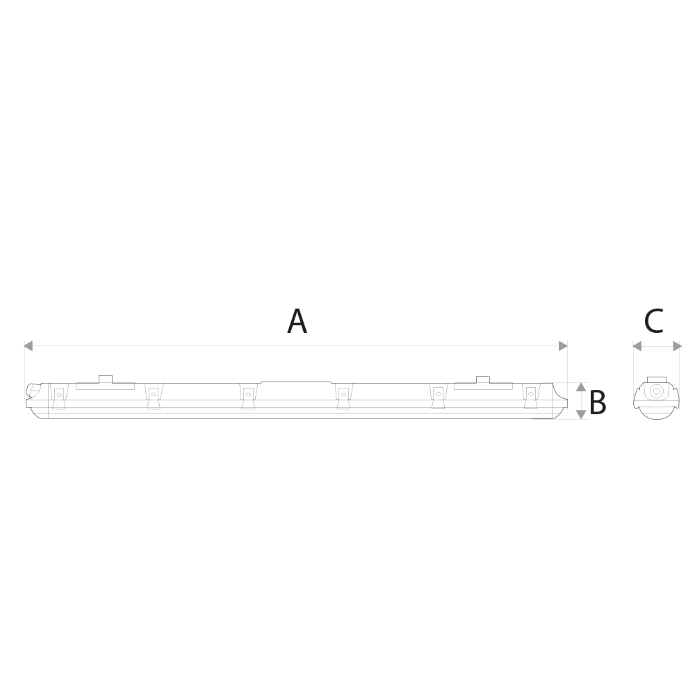 | Dimensões | 600mm (A) x 80mm (B) x 69mm (C) |