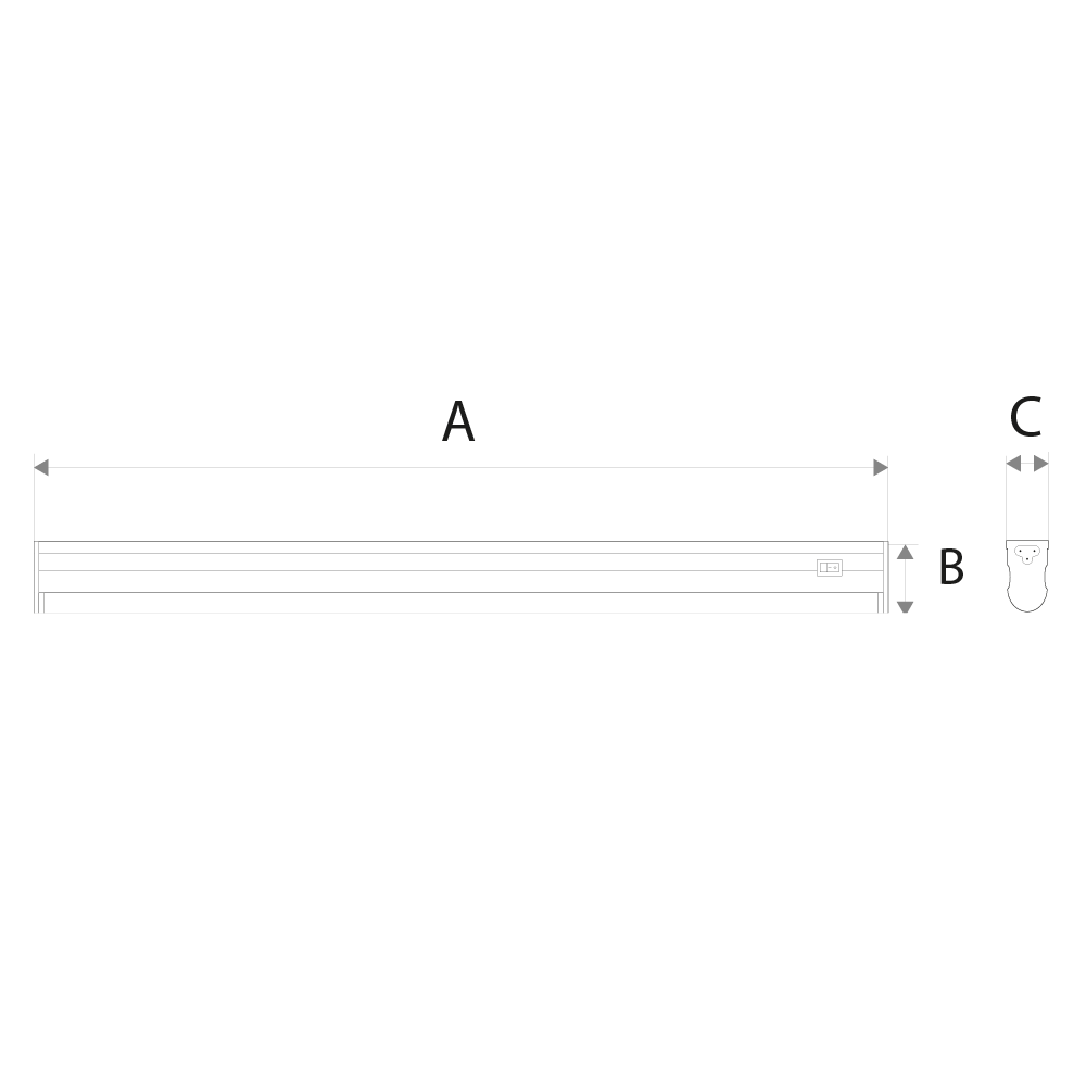 | Dimensões | 300mm (A) x 34mm (B) x 22mm (C) |