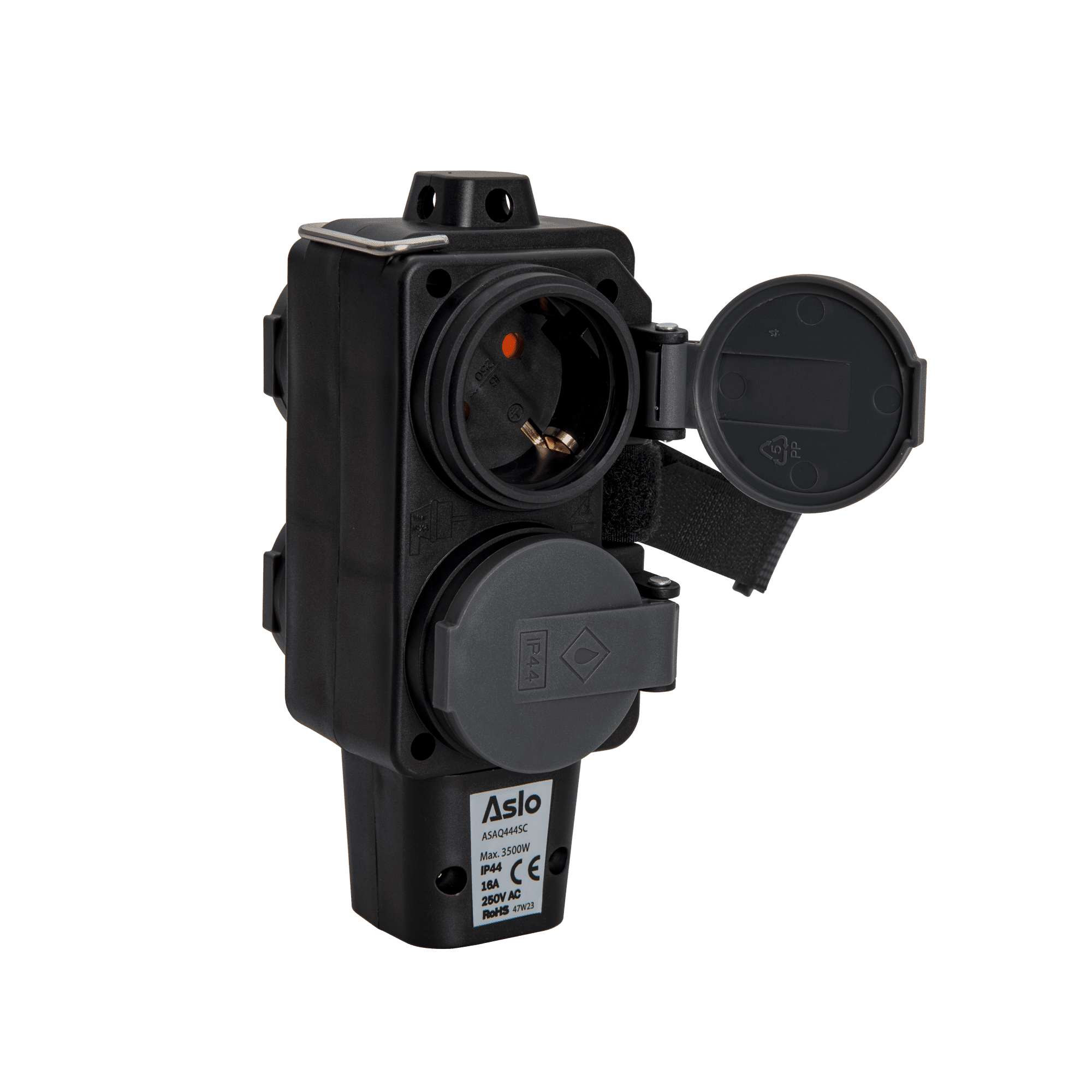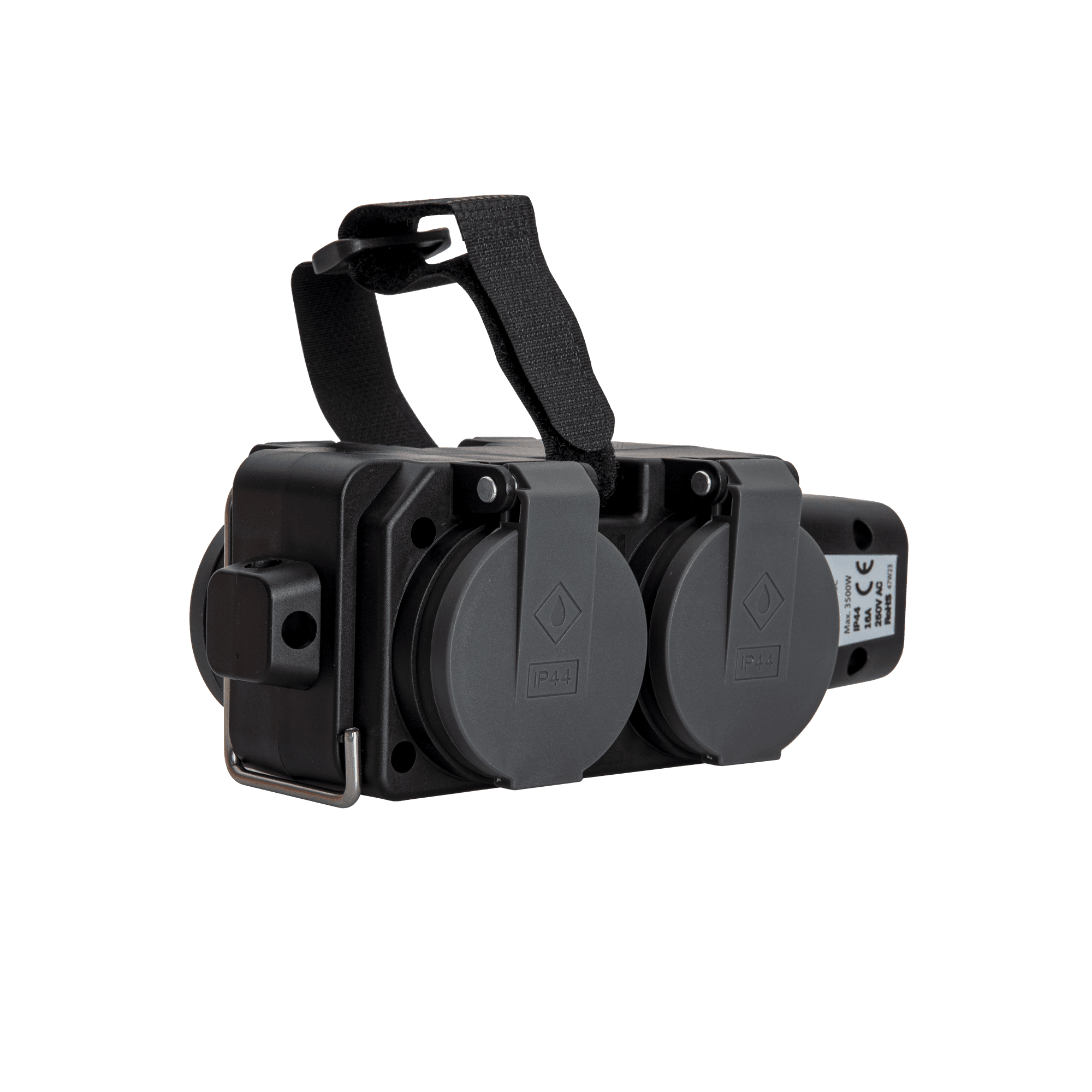 O Adaptador Quádruplo Residencial IP44 oferece 4 tomadas Schuko para ligações seguras e eficientes. Conta com pendurador metálico e fita de velcro, permitindo a fixação em qualquer superfície sem necessidade de parafusos. Suporta até 3500W, garantindo alta potência para diversos dispositivos. Com proteção IP44, resiste a poeira e salpicos de água, sendo ideal para uso doméstico e profissional. Certificado CE e RoHs.