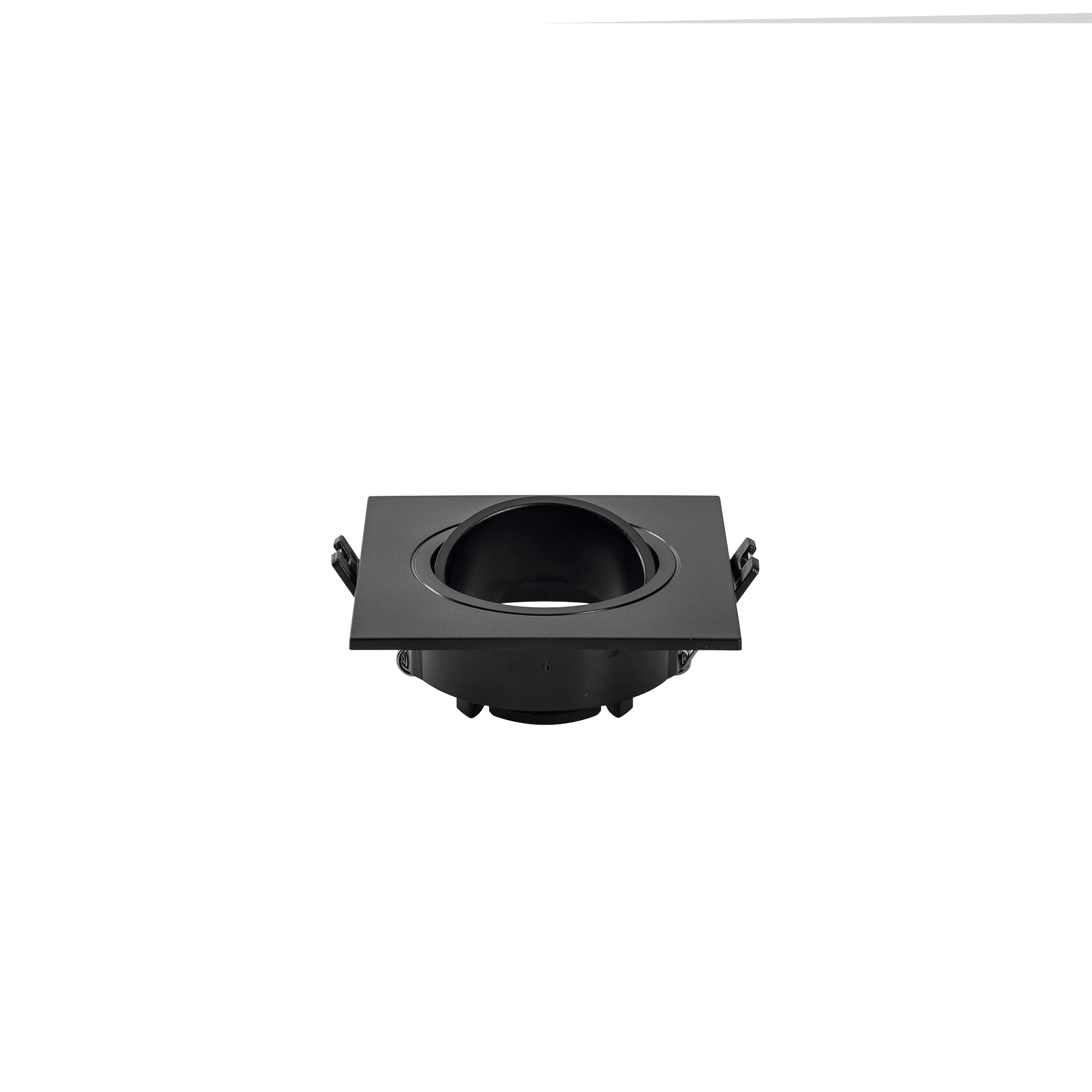 Fabricado em policarbonato (PC) de elevada resistência, é uma solução leve, de embutir, que oferece durabilidade e uma integração discreta em qualquer teto. Destaca-se pela proteção contra raios UV, prevenindo o amarelecimento e a degradação do material a longo prazo, e pelo retardamento anti-chama, que garante uma maior segurança e longevidade. Com um formato quadrado, um design basculante e uma lâmpada recuada, o aro permite direcionar a luz de forma controlada e suave, evitando o encandeamento e apresentando uma iluminação mais sofisticada para realçar elementos arquitetónicos. Adicionalmente, a sua instalação simples e rápida, realizada através de um sistema de encaixe por "click", garante firmeza e comodidade durante o processo. Este aro embutido requer um furo entre 75 e 80mm, assegurando uma integração limpa e simples no ambiente em que se insere. Para além disto, apresenta classes de isolamento II e III, sendo compatível com lâmpadas GU10 ou MR16.