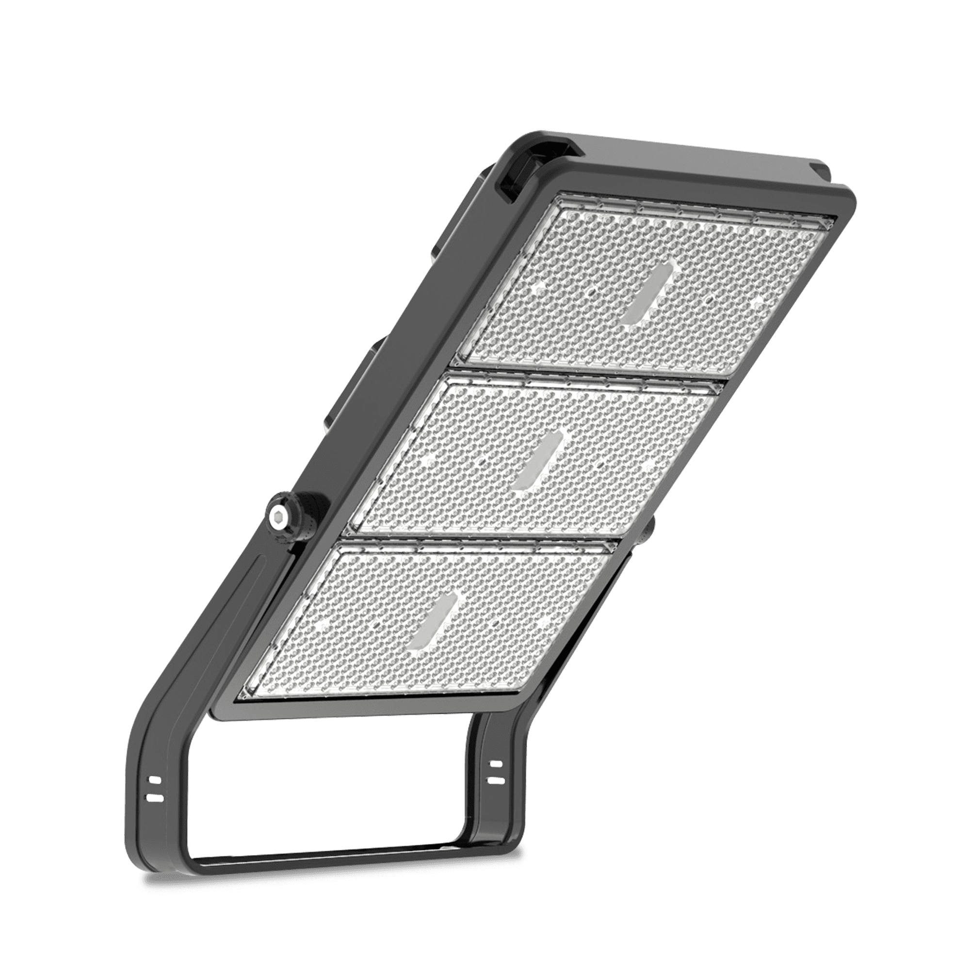 Projetor LED com estrutura em alumínio e módulos orientáveis, ideal para iluminação de grandes áreas exteriores. Oferece alta eficiência energética (140Lm/W), ângulo de abertura de 90°, proteção IP66 contra poeiras e jatos fortes de água, e índice de resistência mecânica IK08. Classe de isolamento I, adequado para ambientes exigentes.