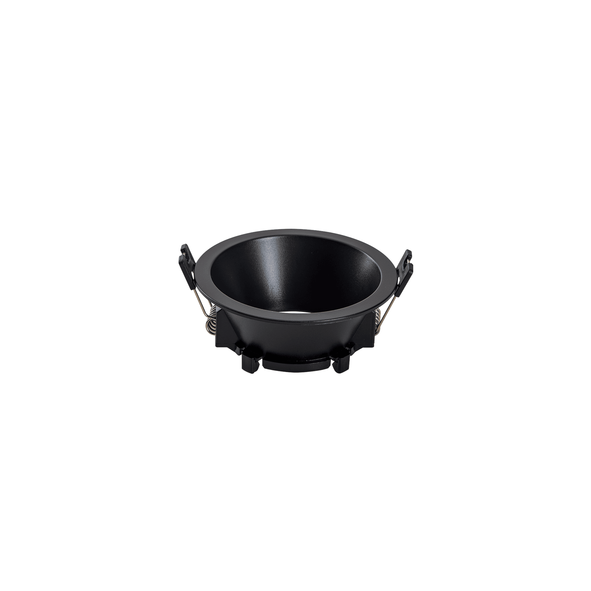 O Aro Redondo Recuado Fixo em PC da ASLO é um acessório ideal para sistemas de iluminação em tetos falsos, combinando um design elegante com funcionalidade. Fabricado em policarbonato (PC) de elevada resistência, é uma solução leve, de embutir, que oferece durabilidade e uma integração discreta em qualquer teto. Destaca-se pela proteção contra raios UV, prevenindo o amarelecimento e a degradação do material a longo prazo, e pelo retardamento anti-chama, que garante uma maior segurança e longevidade. Com um formato redondo e uma lâmpada recuada, o foco de luz é ligeiramente afastado da superfície, reduzindo o encandeamento e proporcionando uma integração harmoniosa no teto com uma iluminação mais suave e confortável. Adicionalmente, a sua instalação simples e rápida, realizada através de um sistema de encaixe por "click", garante firmeza e comodidade durante o processo. Este aro embutido requer um furo de 75mm, assegurando uma integração limpa e simples no ambiente em que se insere. Para além disto, apresenta classes de isolamento II e III, sendo compatível com lâmpadas GU10 ou MR16.