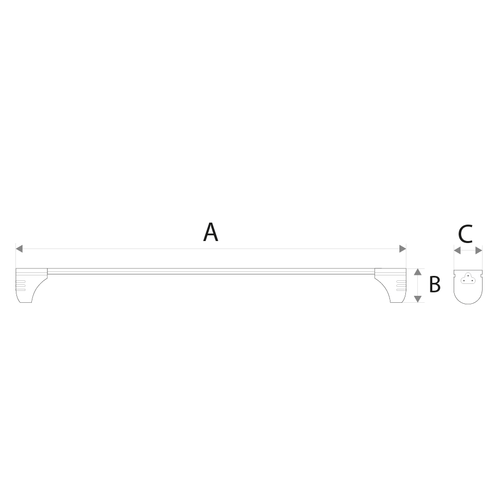 | Dimensões | 600mm (A) x 44mm (B) x 33mm (C) |