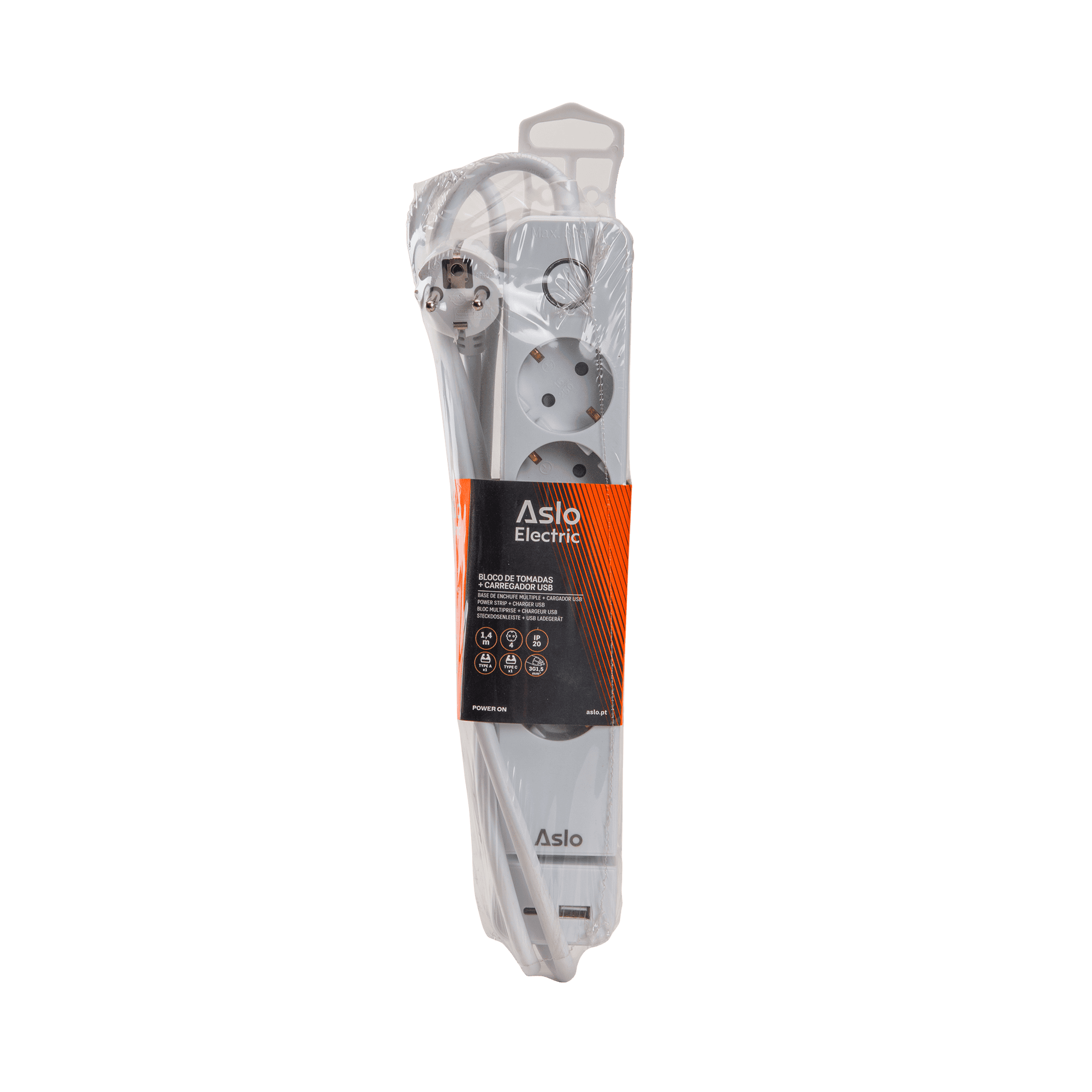 O Bloco de Tomadas com Carregador USB A+C da ASLO oferece energia e conveniência num só dispositivo, permitindo alimentar e carregar vários equipamentos em simultâneo. Desenvolvido para quem procura organização e potência, este bloco está equipado com quatro tomadas tipo Schuko 2P+T-16A com alvéolos protegidos e duas portas USB A + C, garantindo uma maior segurança e reduzindo o risco de acidentes elétricos. A tensão nominal de 230V garante compatibilidade total com as instalações elétricas, enquanto o cabo de 1,4 metros oferece flexibilidade de posicionamento. Com uma construção robusta e acabamentos de qualidade, este bloco de tomadas é ideal tanto para utilização doméstica como profissional, assegurando uma distribuição estável de energia e um carregamento eficiente dos dispositivos.