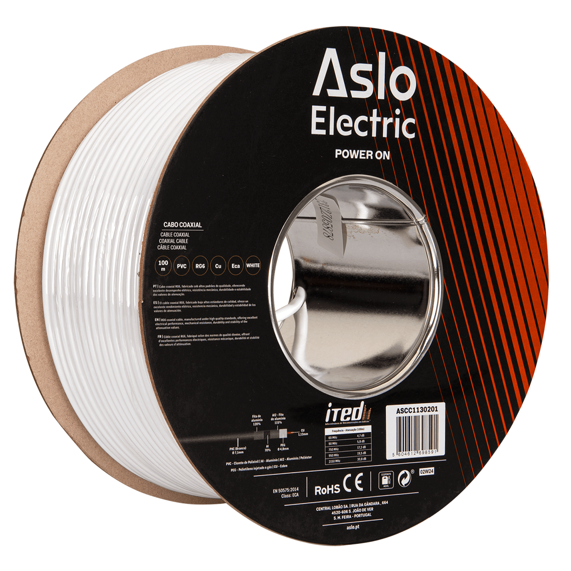 O cabo coaxial RG6 CU PVC 750 é ideal para transmissões de sinal de alta qualidade em sistemas de televisão por cabo, satélite e internet. Com uma capa de PVC de 7,1mm, oferece durabilidade e resistência. A sua estrutura inclui um condutor central de cobre com 1,13mm de diâmetro, garantindo excelente condutividade. Possui três camadas de blindagem: uma malha de alumínio com 70% de cobertura e duas folhas de alumínio com 115% e 120% de cobertura, proporcionando proteção superior contra interferências eletromagnéticas. O dielétrico de espuma PE injetado a gás assegura uma baixa perda de sinal. Classificado com reação ao fogo CPR - Eca, é seguro para uso em ambientes internos. A cor RAL 9016 facilita a integração em diferentes espaços.