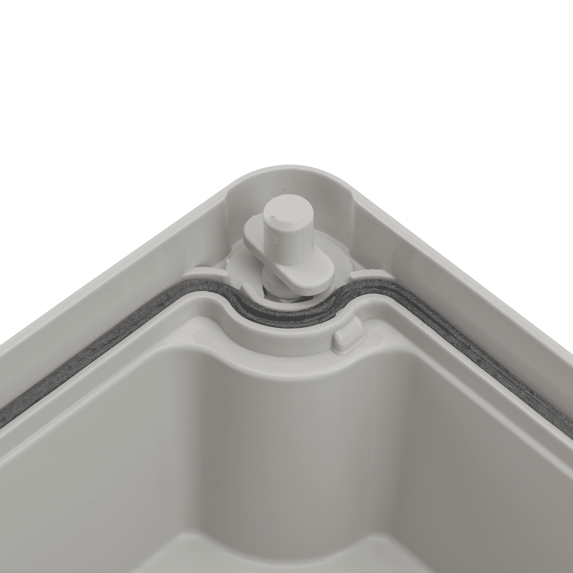 A estanquidade IP66 é assegurada através de vedantes em TPE, tampões de proteção e sistema de fixação por parafusos, impedindo a entrada de água e poeiras. A tampa de encaixe garante um fecho seguro e facilita a instalação e manutenção.