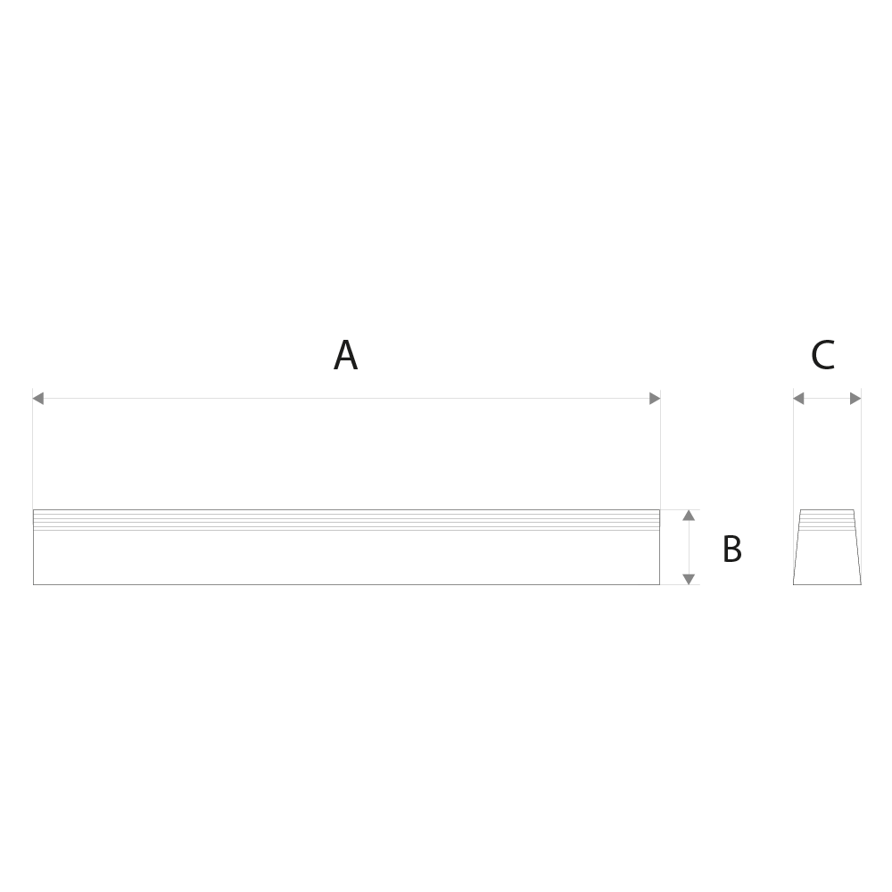 | Dimensões | 600mm (A) x 78mm (B) x 65mm (C) |