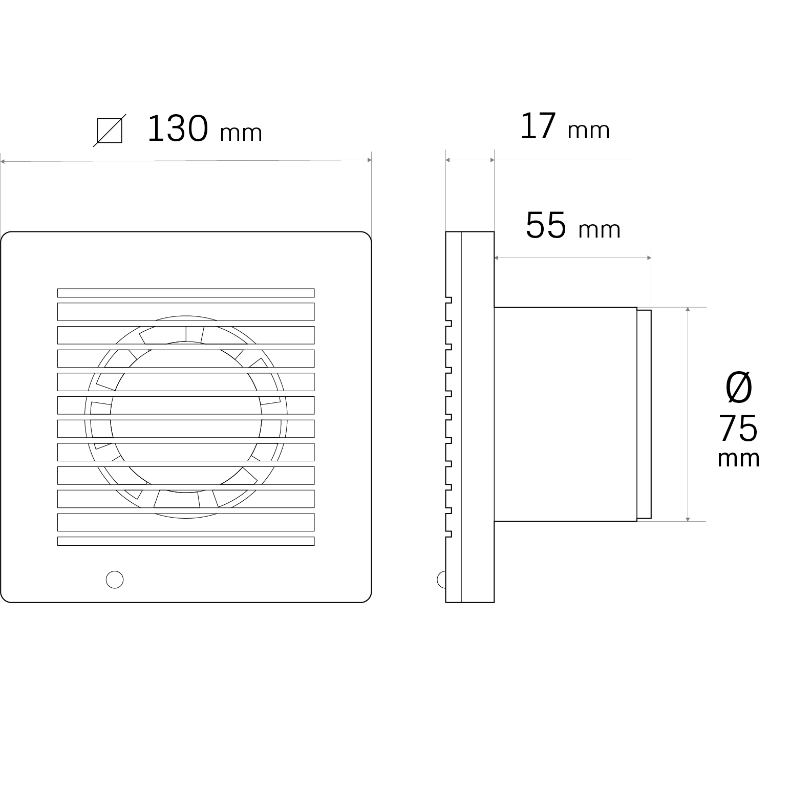 Extrator de ventilação com diâmetro de 75mm, ideal para melhorar a circulação de ar em espaços pequenos. Com uma potência de 17W e tensão de 230V AC, opera a uma frequência de 50/60 Hz e atinge 2350 rpm, garantindo um caudal de 80m³/h. Silencioso, com nível sonoro inferior a 45 dB, é adequado para ambientes húmidos graças ao índice de proteção IP44. Classe de isolamento II assegura segurança elétrica. Ideal para casas de banho e cozinhas, promovendo um ambiente mais saudável.