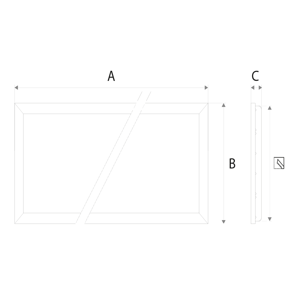 | Dimensões | 595mm (A) x 295mm (B) x 32mm (C) |