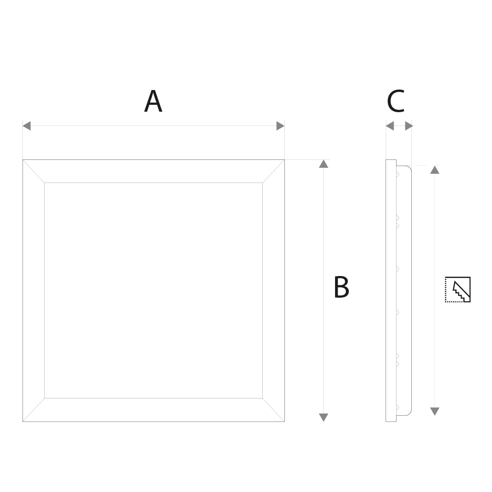| Dimensões | 595mm (A) x 595mm (B) x 32mm (C) |