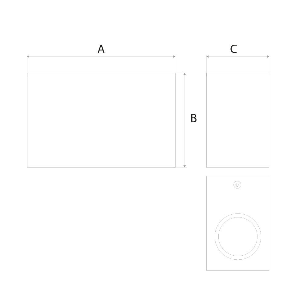 | Dimensões | 100mm (A) x 78mm (B) x 68mm (C) |