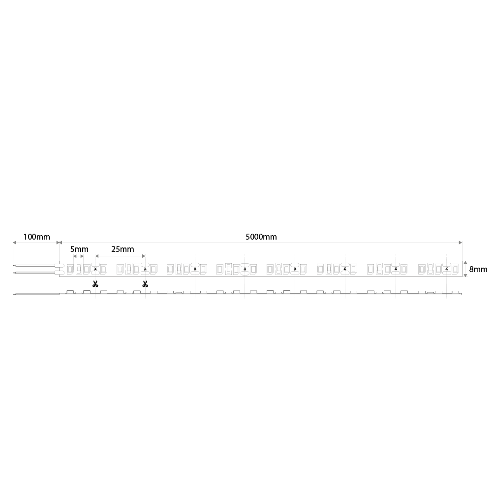 | Dimensões | Rolo: 5 metros; PCB: 8mm |