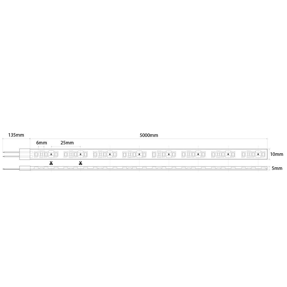 Fita LED de 12V ideal para aplicações decorativas interiores em zonas com exposição a poeiras e salpicos de água. Fabricada em PVC, equipada com LEDs SMD 2835 de alto desempenho, 120 LEDs/m, com índice de proteção IP65 (proteção total contra poeiras e resistência a jatos de água de baixa pressão). Classe de isolamento II. Temperatura de funcionamento: -25°C a +60°C.