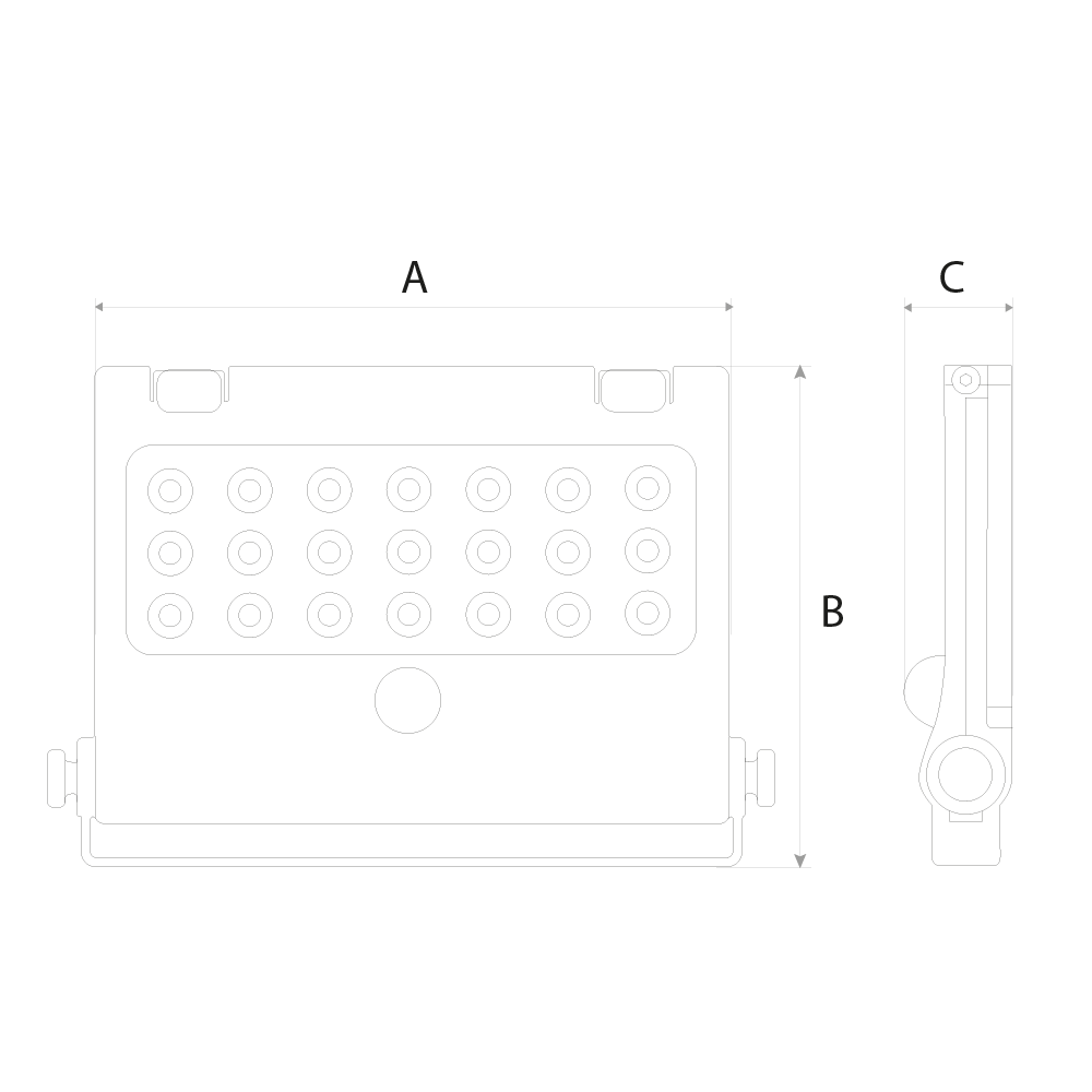 | Dimensões | 190mm (A) x 147mm (B) x 31mm (C) |