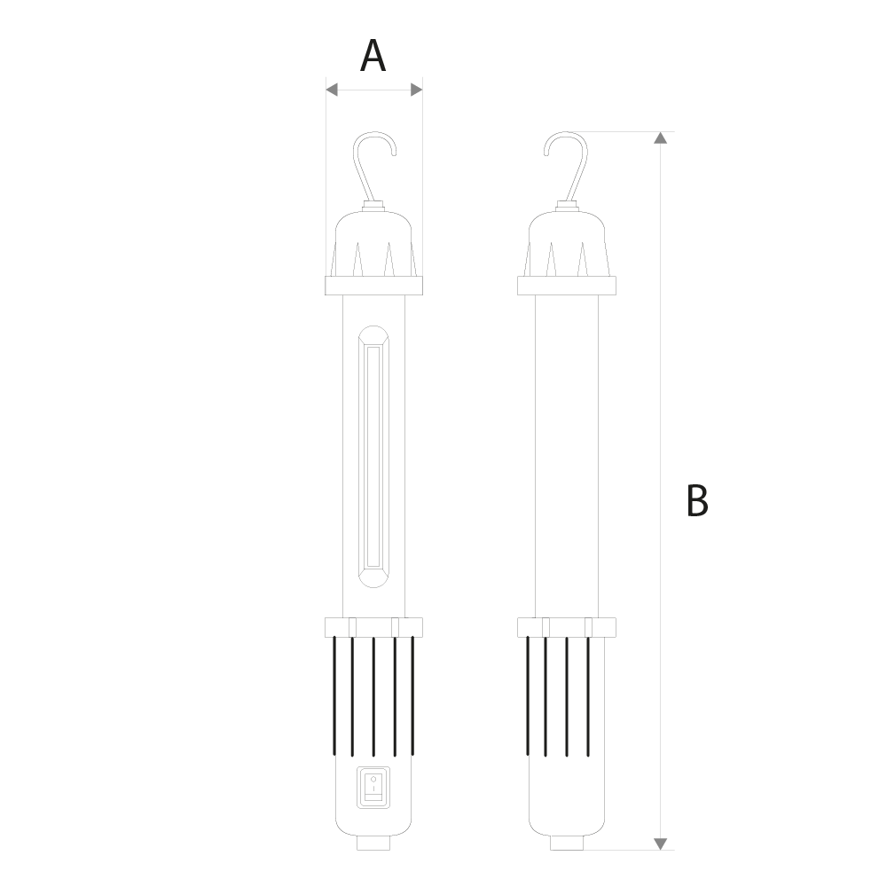 Gambiarra LED recarregável com corpo em plástico e gancho integrado para suspensão. Funciona com LED COB e bateria de iões de lítio 3,7V 1800mAh, oferecendo até 4h de autonomia após carregamento completo (3–4h). Fornecida com cabo USB e carregador 5V/1A. Com interruptor ON/OFF e índice de proteção IP20 (proteção contra corpos sólidos >12mm, sem resistência à água). Classe II: dupla isolação elétrica para segurança adicional. Para uso em interiores, como oficinas ou espaços domésticos.