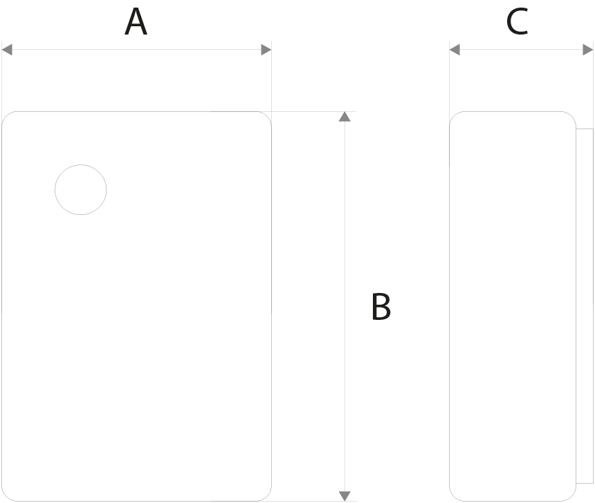 | Dimensões | 65,4mm (A) x 96,2mm (B) x 33,7mm (C) |