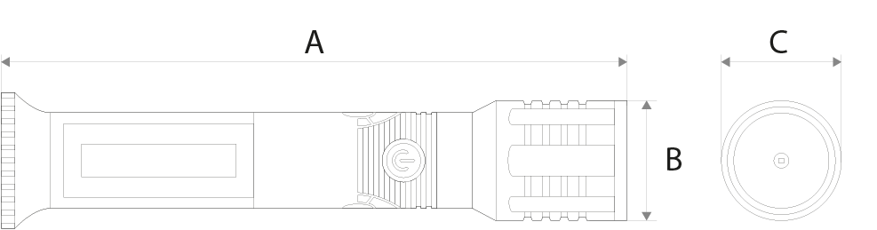| Dimensões | 190mm (A) x 35mm (B) x 35mm (C) |