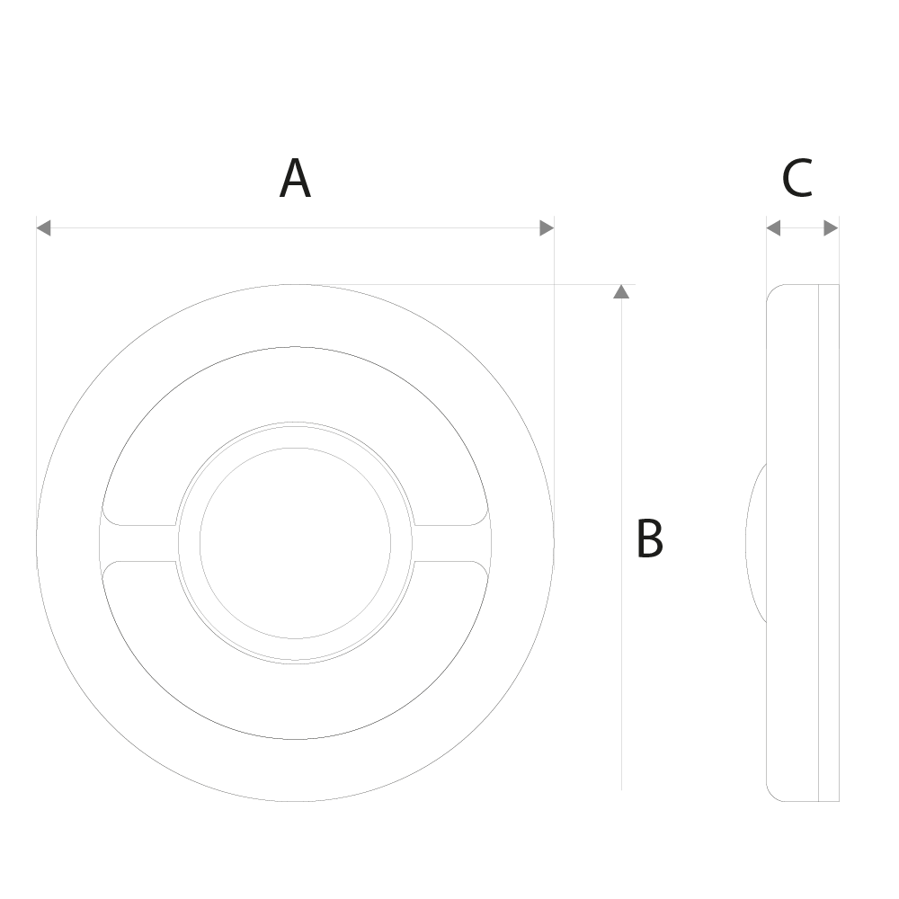 | Dimensões | 260mm (A) x 260mm (B) x 40mm (C) |