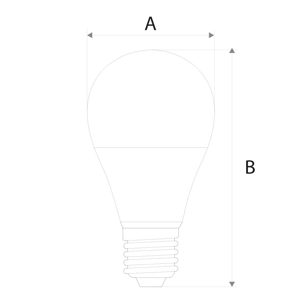 Lâmpada LED standard com casquilho E27 e corpo em PVC. Oferece ângulo de abertura de 170° e elevada durabilidade (30.000h). Funciona em tensões de 170-250V AC e frequência de 50-60Hz. Não é dímavel.