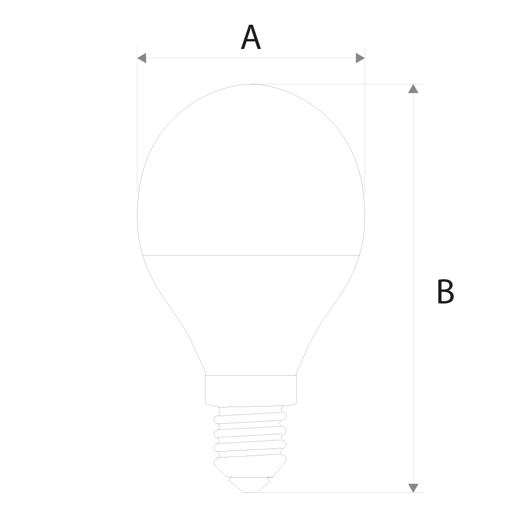 Lâmpada LED de formato G45 com casquilho E14, corpo em PVC e difusor em acabamento opalino. Ângulo de abertura de 170°. Compatível com instalações de 220-240V AC.