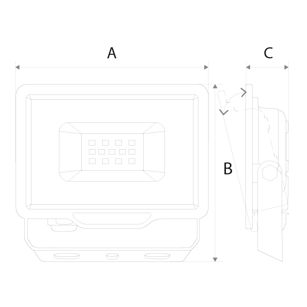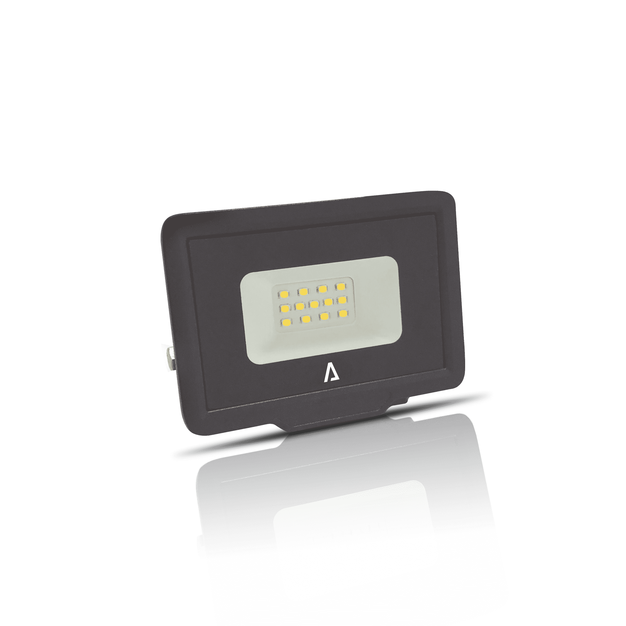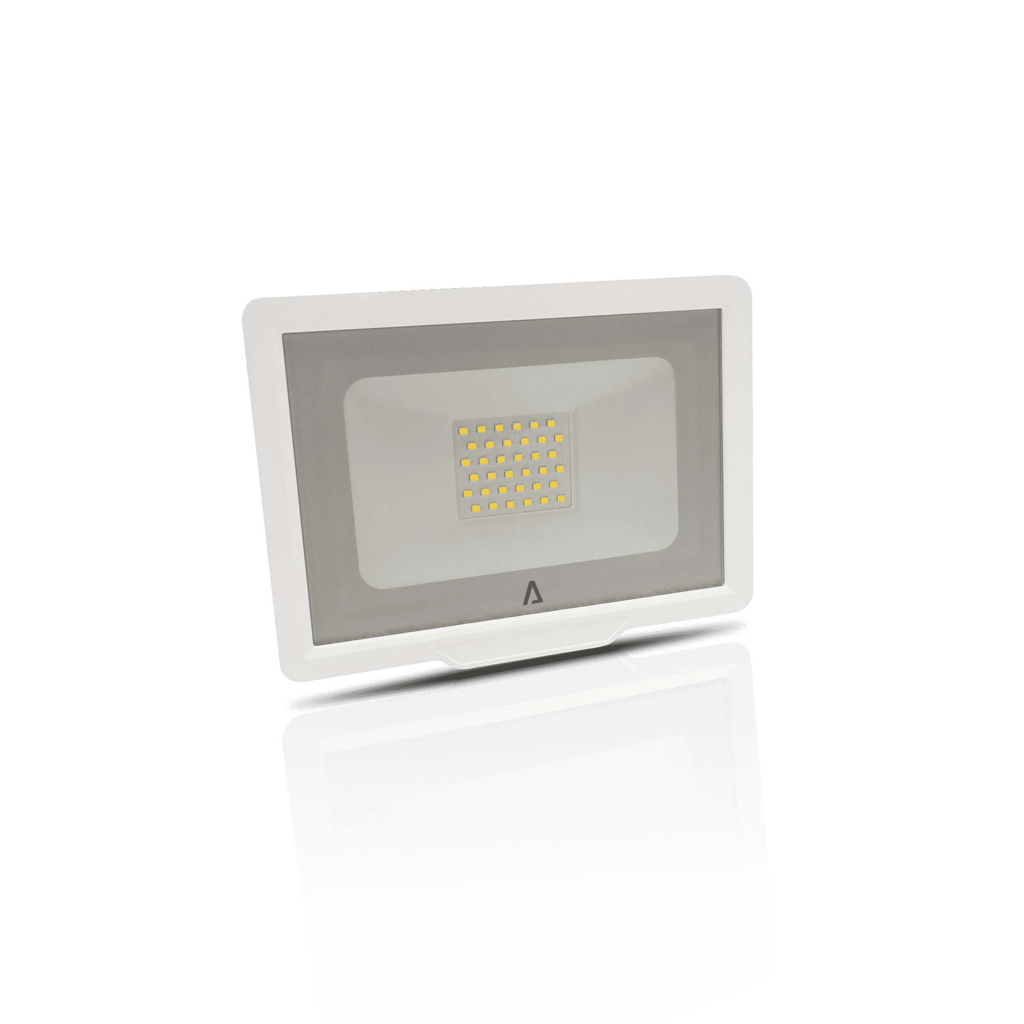 Projetor LED da série SLIM com design compacto e estrutura em alumínio, ideal para instalação em espaços exteriores. Equipado com difusor em vidro temperado e suporte de fixação ajustável. Grau de proteção IP65, resistente à poeira e jatos de água. Classe de isolamento I, adequado para instalação elétrica com ligação à terra. Para uso em exteriores ou locais expostos à humidade.