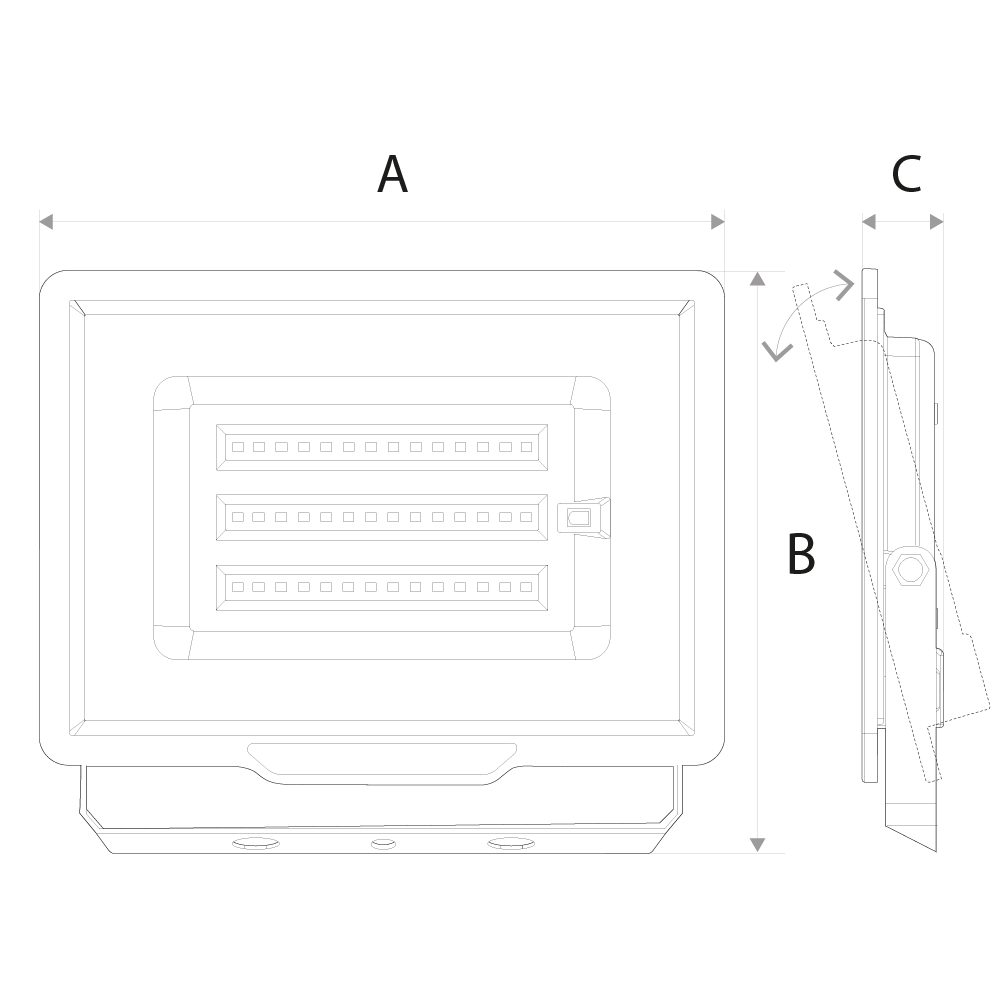 Projetor LED RGB da série SLIM, com estrutura em alumínio e difusor em vidro temperado. Oferece iluminação decorativa com controlo remoto para ajuste de cor. Possui índice de proteção IP65, que garante proteção contra jatos de água e poeiras, e classe de isolamento I, adequada para instalações seguras em ambientes exteriores. Dimensões: 217x185x26mm (50W) ou 287x240x32mm (100W).
