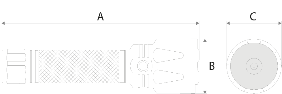 | Dimensões | 165mm (A) x 37mm (B) x 37mm (C) |