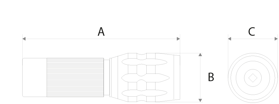 | Dimensões | 108mm (A) x 30mm (B) x 30mm (C) |