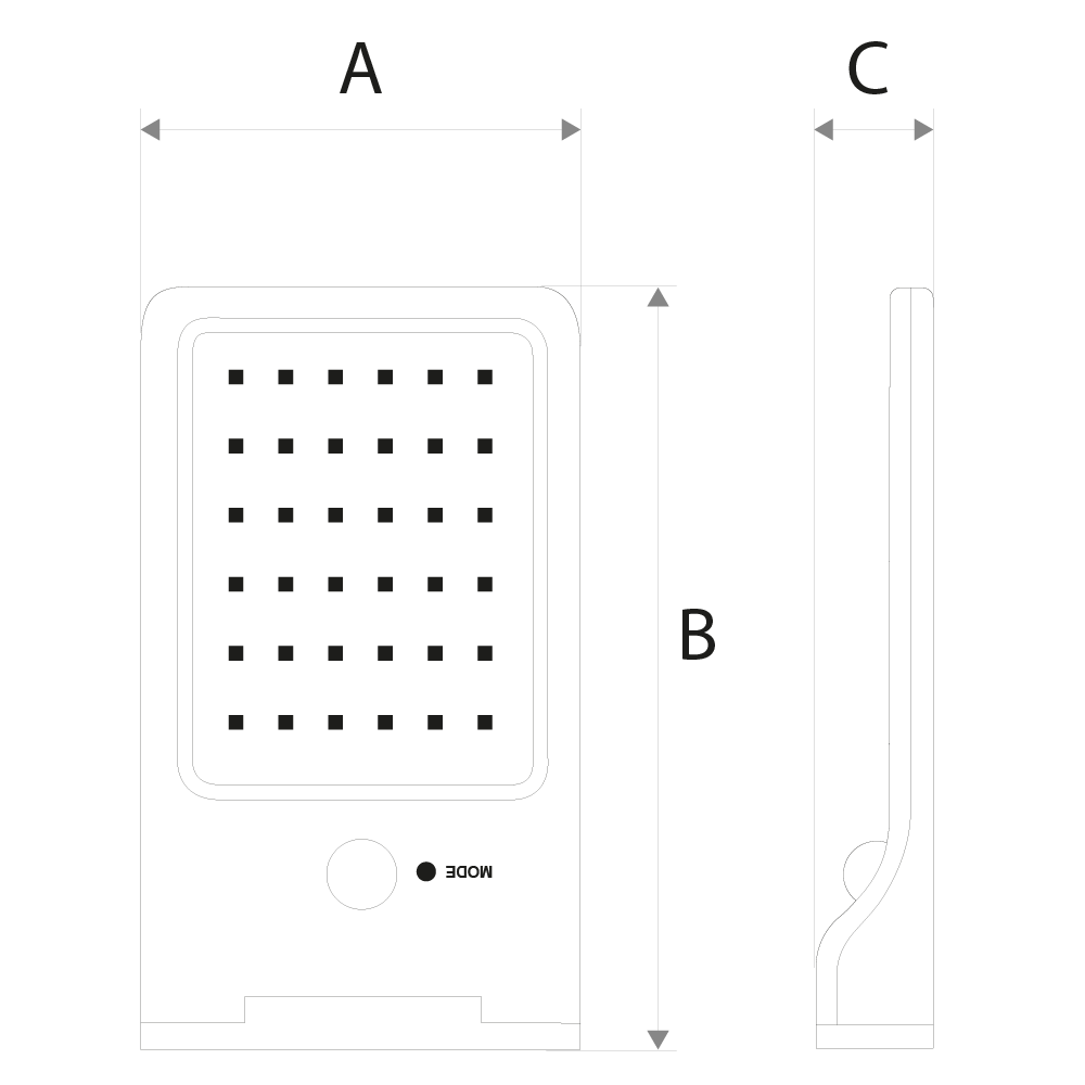 | Dimensões | 110mm (A) x 192mm (B) x 30mm (C) |