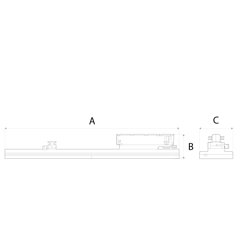 | Dimensões | 572mm (A) x 66mm (B) x 61mm (C) |