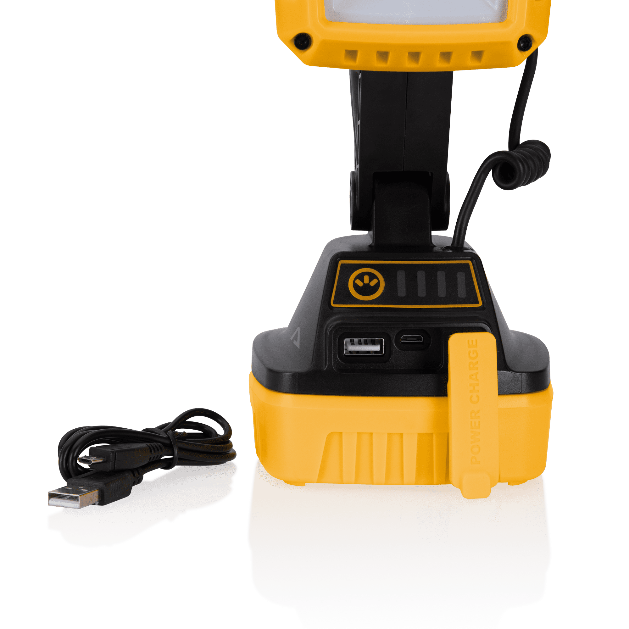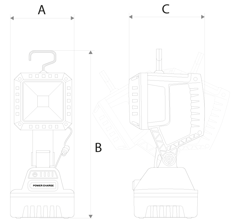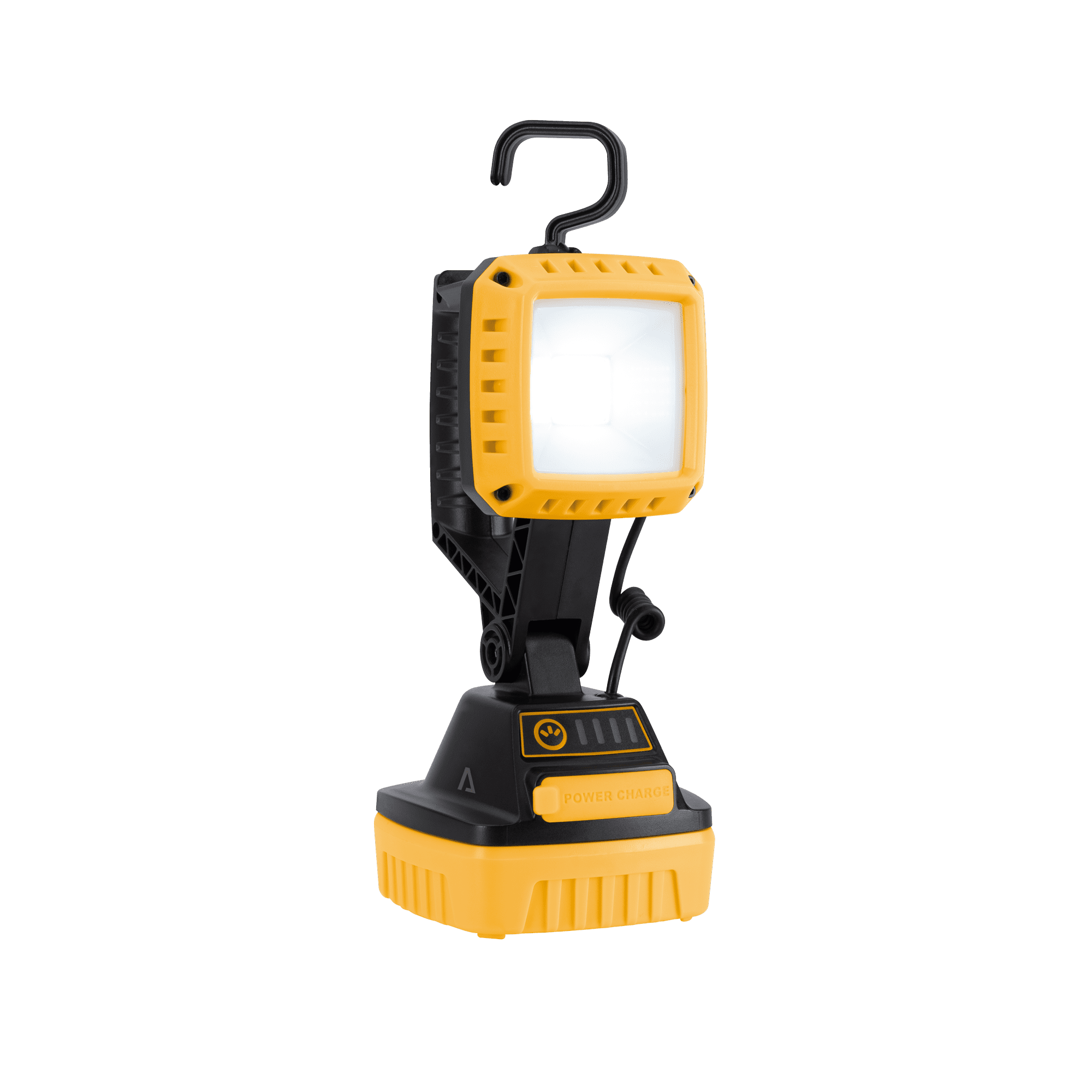 Lanterna de trabalho recarregável com iluminação LED COB de 10W e até 1000 lúmenes. Possui estrutura em ABS resistente, base magnética, gancho dobrável e cabeça com rotação de 140°. Inclui porta USB para carregamento de equipamentos e indicador de carga. Modos de funcionamento: 100%, 50%, flash SOS e ON/OFF. Índice de proteção IP54 – resistente a poeiras e salpicos. Para uso em oficinas, estaleiros ou atividades no exterior.