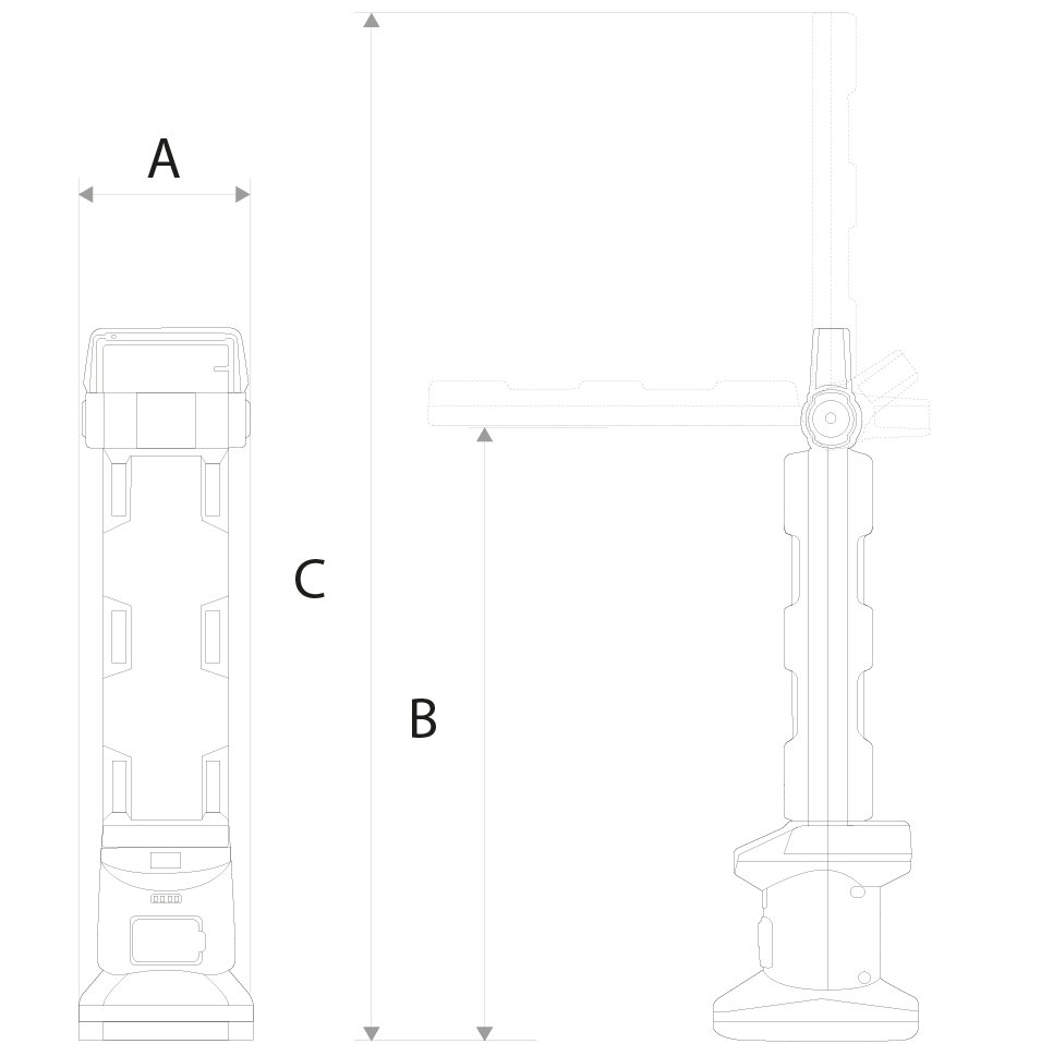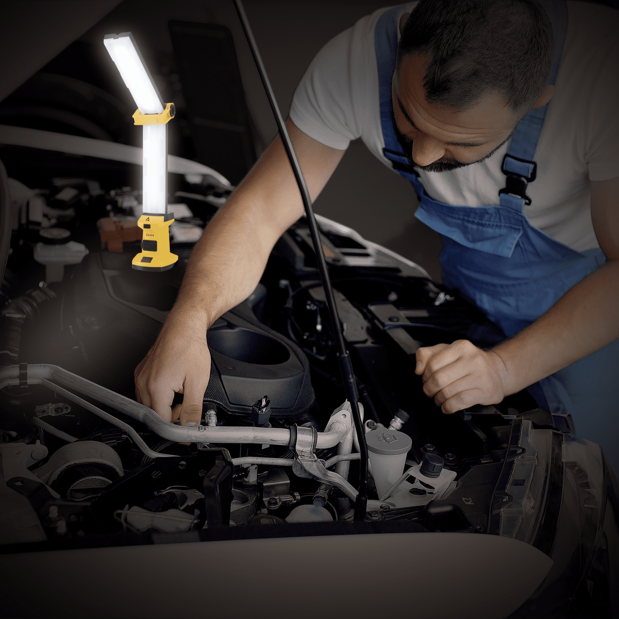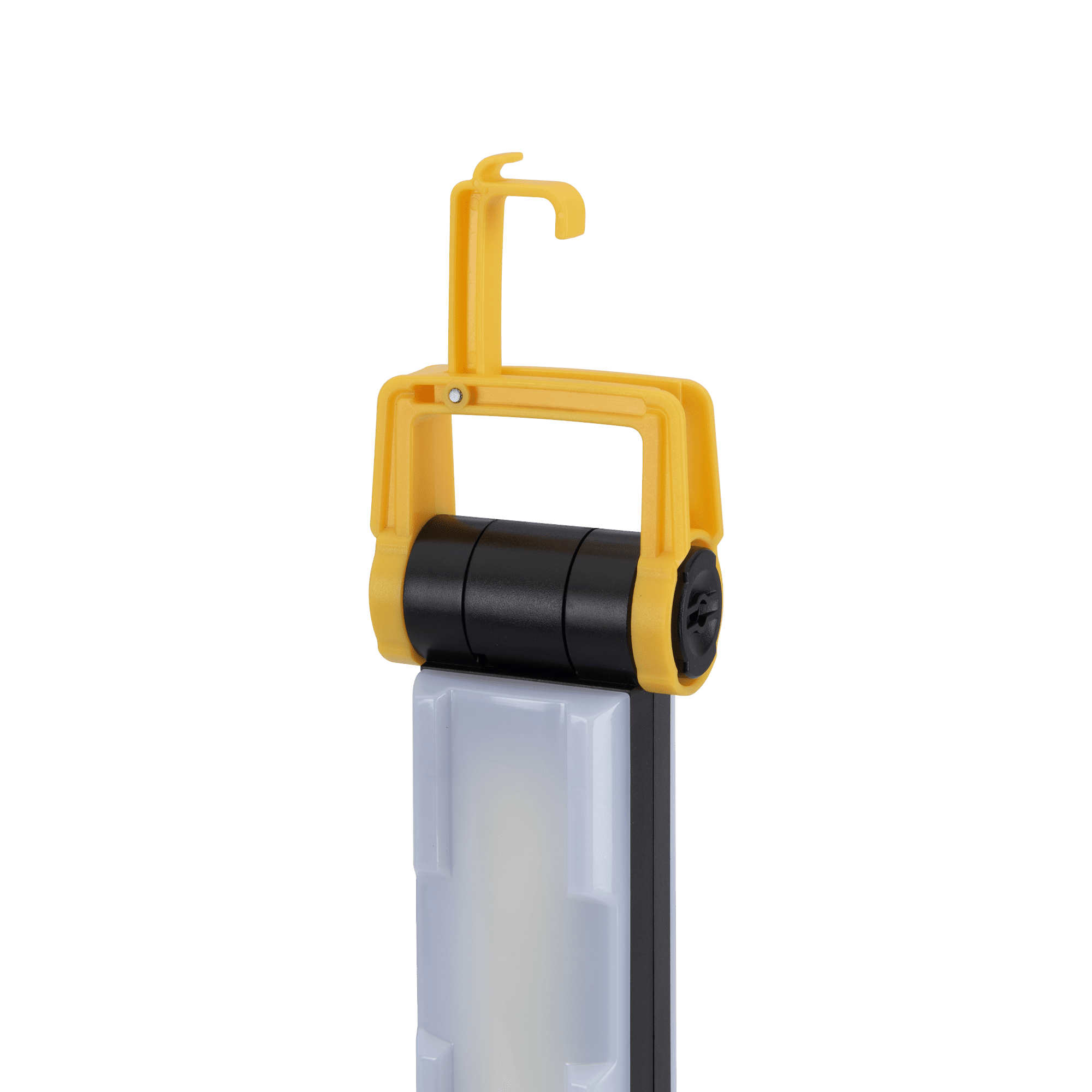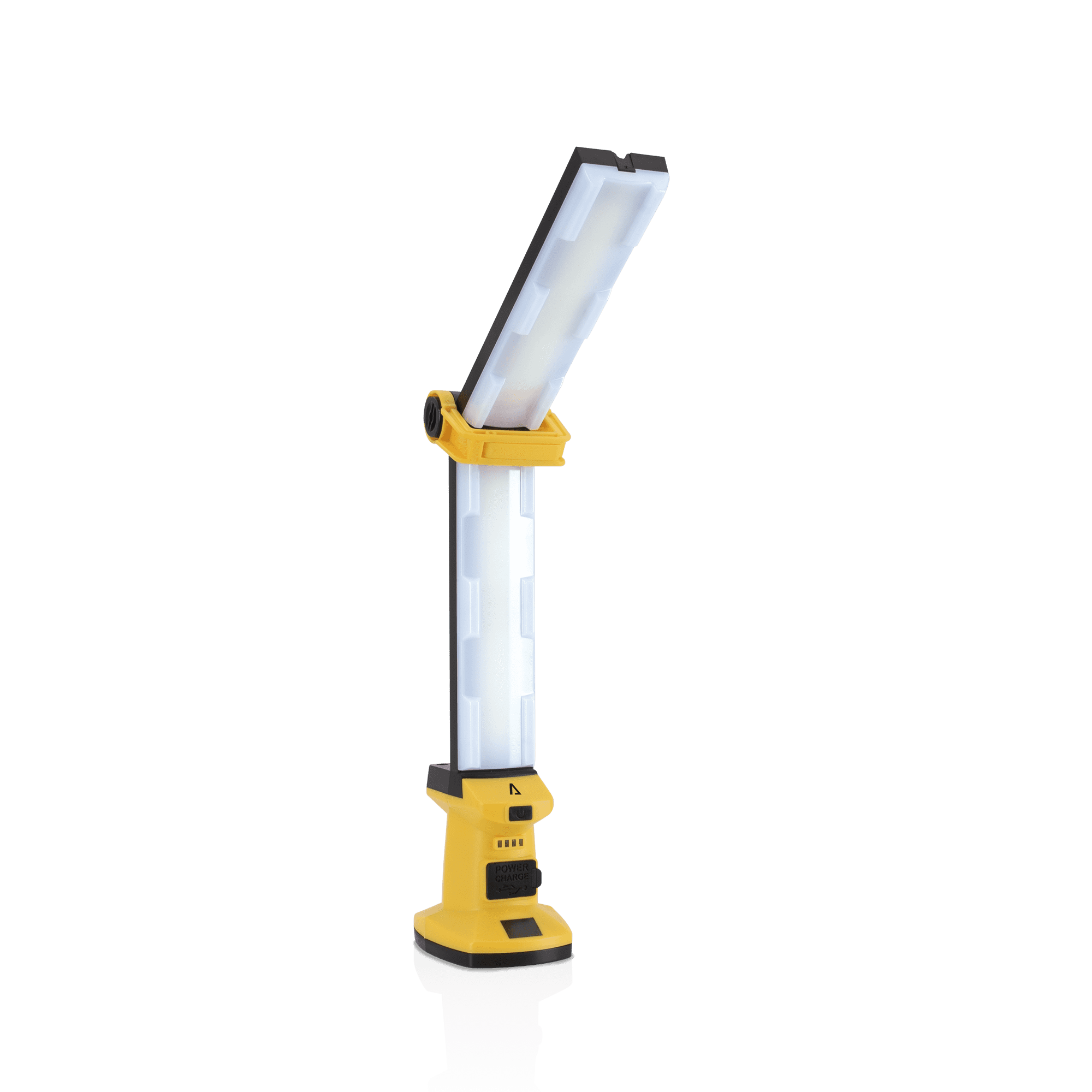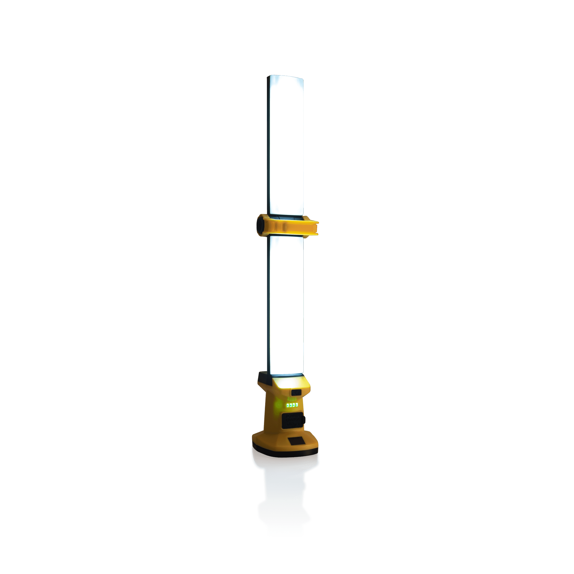 Lanterna vertical com corpo em ABS e base magnética para fixação segura. Oferece iluminação potente e versátil, com ângulo de reflexão ajustável a 180° e autonomia até 17h. Inclui indicador de carga e entrada USB para recarregamento e carregamento de dispositivos. Grau de proteção IP22 (protegida contra gotas e objetos de até 12,5 mm). Para utilização em espaços interiores ou cobertos.