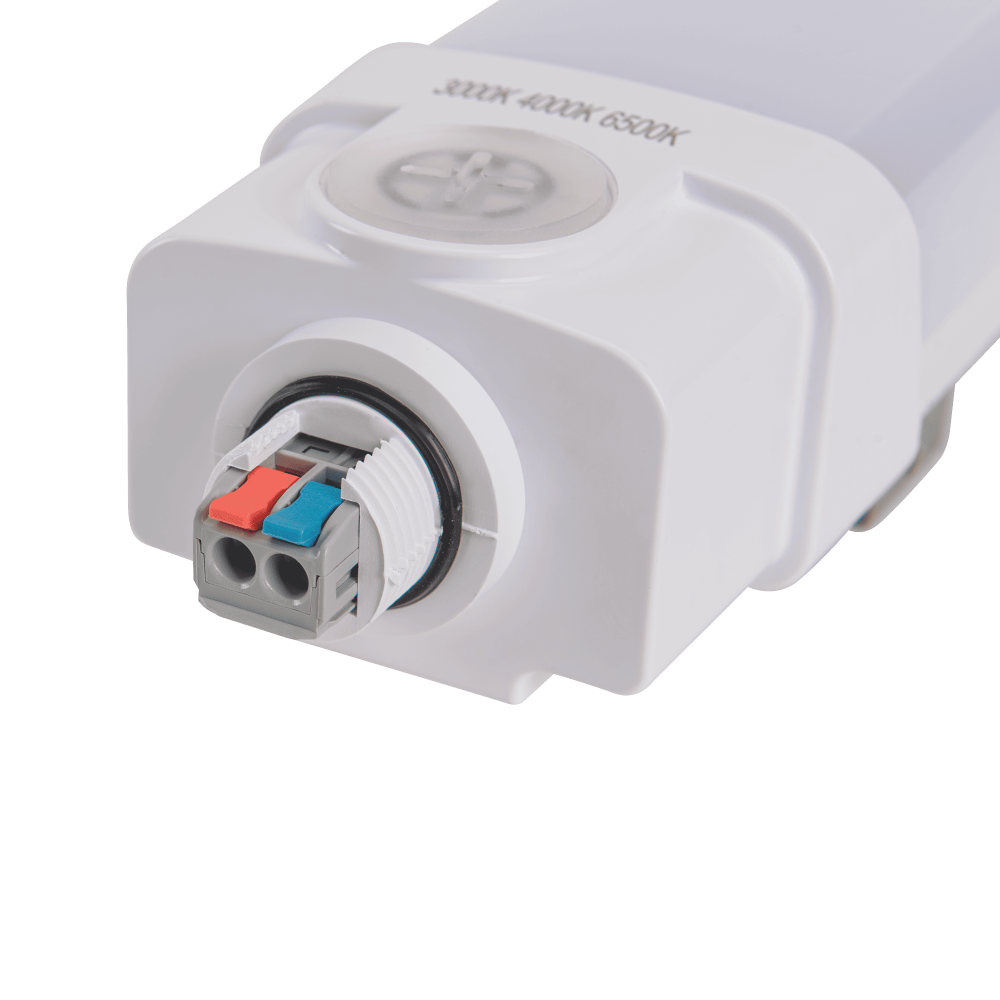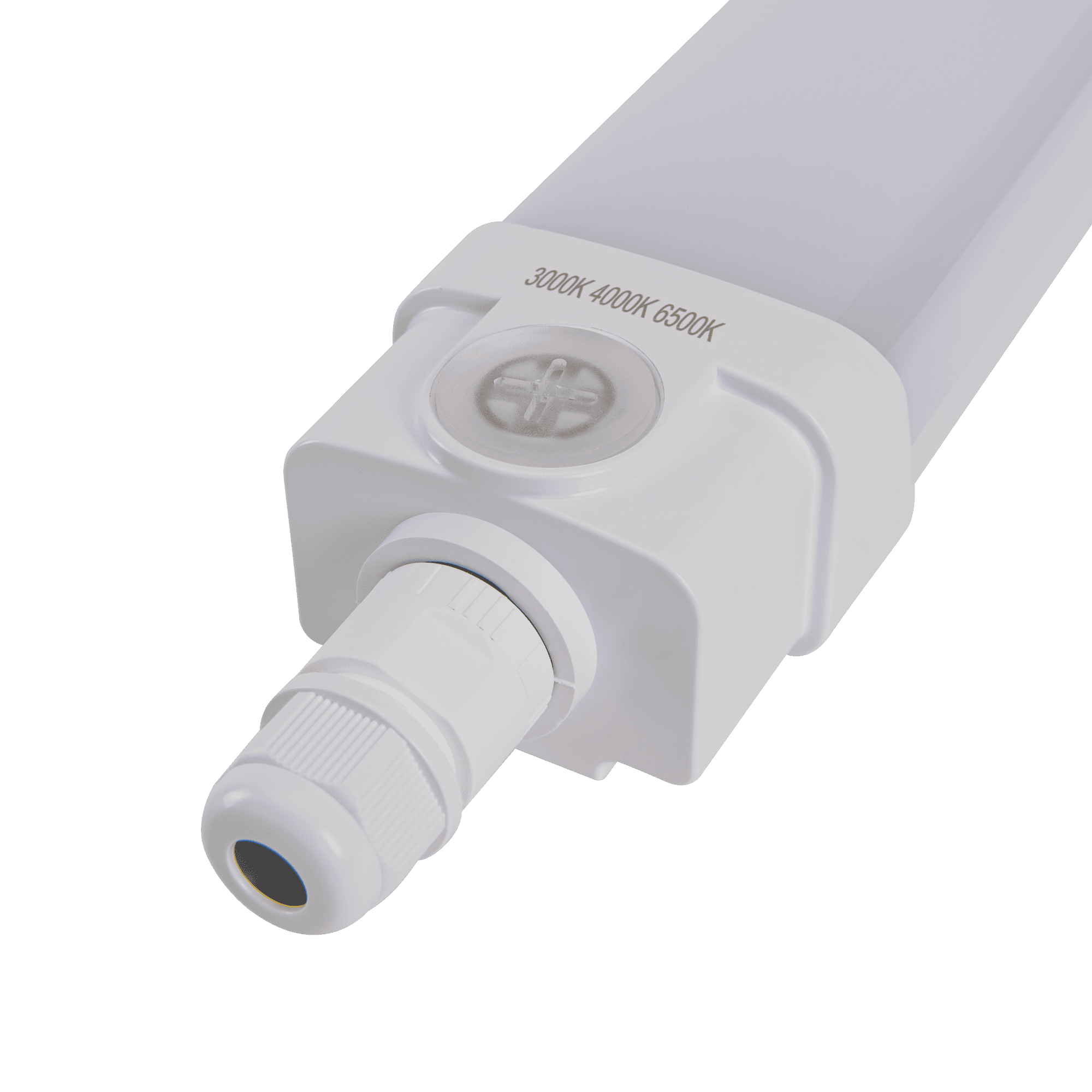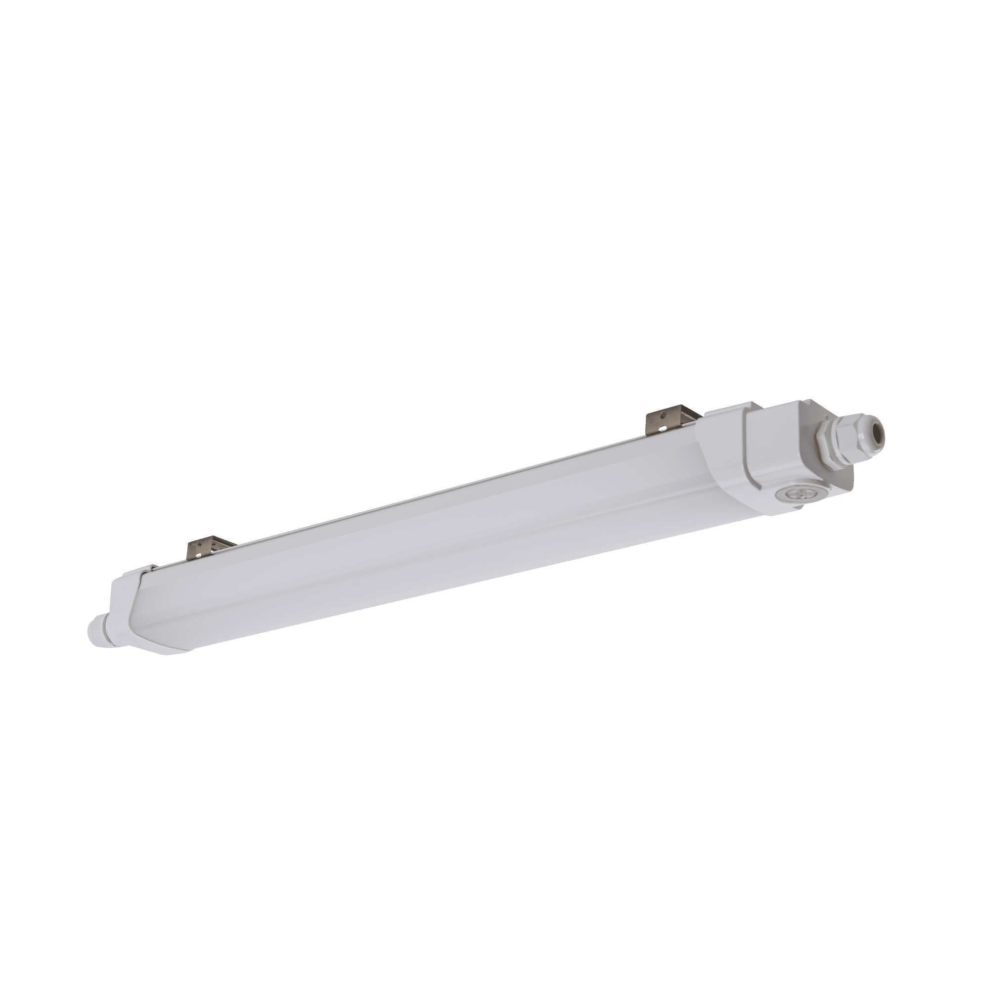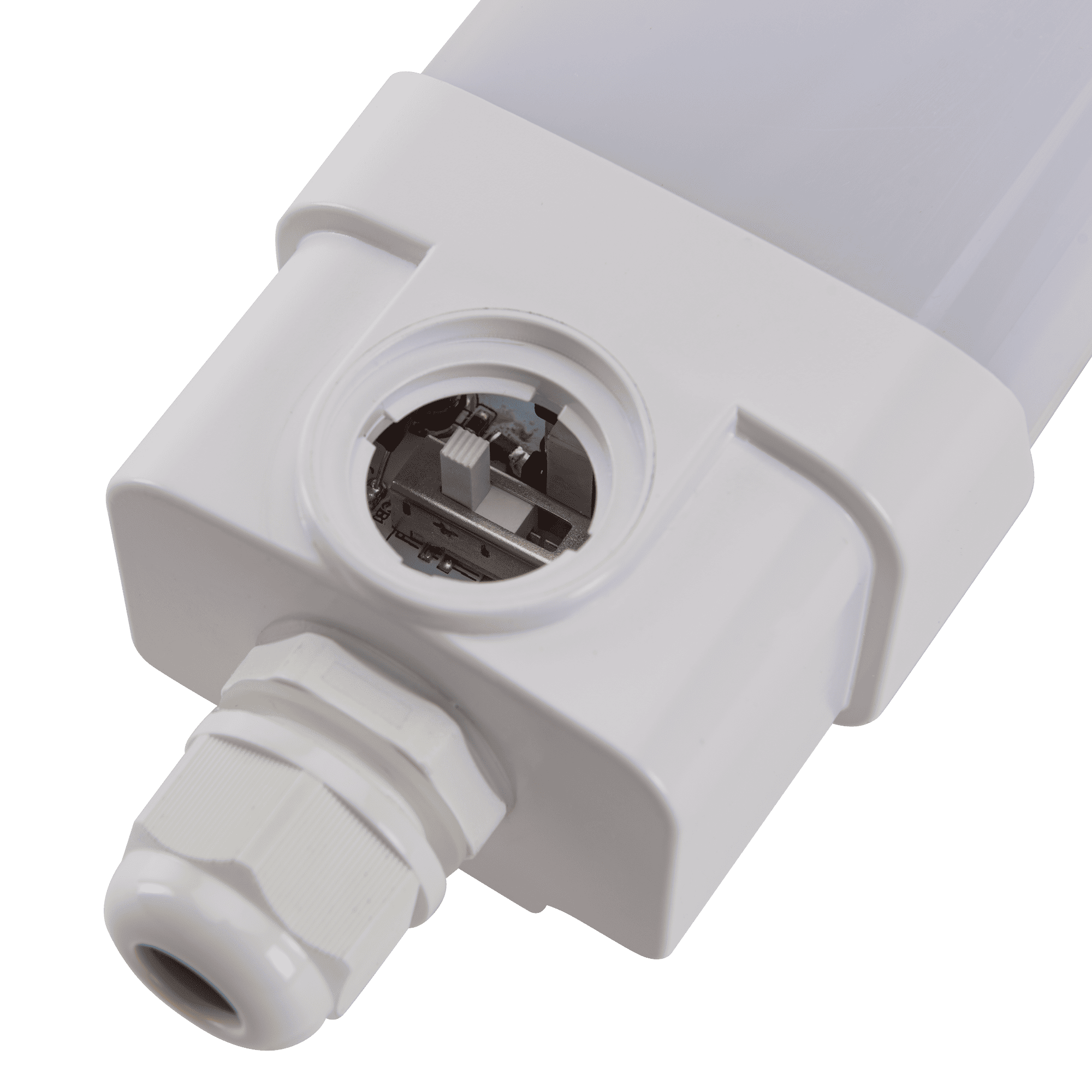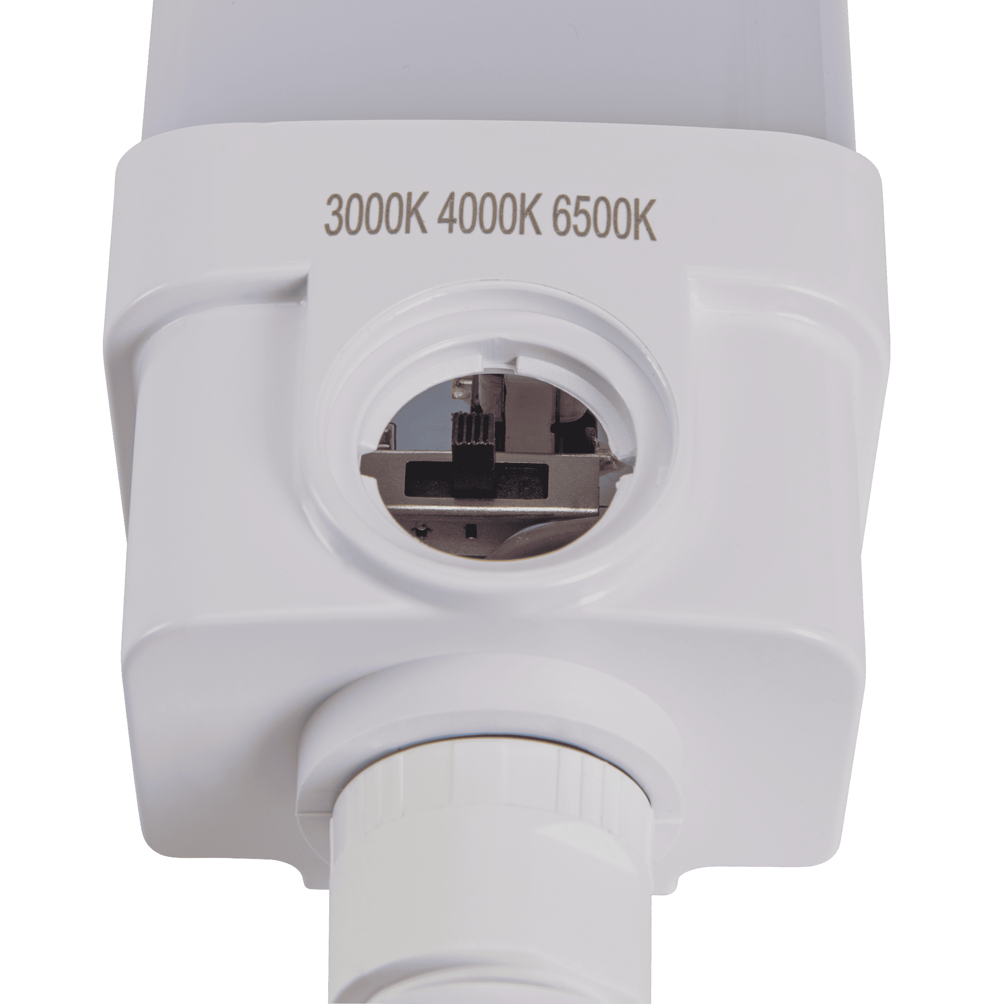 A Armadura Estanque LED da ASLO oferece uma iluminação duradoura e eficiente, quer seja em ambientes interiores, como exteriores. Com um seletor de temperatura de cor com 3CCTs (3000K, 4000K e 6500K), permite ajustar facilmente o tom de luz, adaptando-o às diferentes necessidades de cada espaço. Esta luminária LED, de instalação saliente, pode ser montada tanto na parede como no teto, o que reforça o seu caráter versátil. Adicionalmente, o ângulo de abertura de 120º garante uma distribuição ampla e uniforme da luz, sendo ideal para áreas de trabalho, garagens, armazéns ou zonas exteriores. Graças ao índice de proteção IP65 e à resistência a impacto IK08, a armadura oferece uma elevada proteção contra poeiras, humidade e choques, assegurando um desempenho fiável, mesmo em ambientes exigentes. Para além disto, a vida útil de 25000 horas e a classe de isolamento II reforçam a sua durabilidade e segurança.