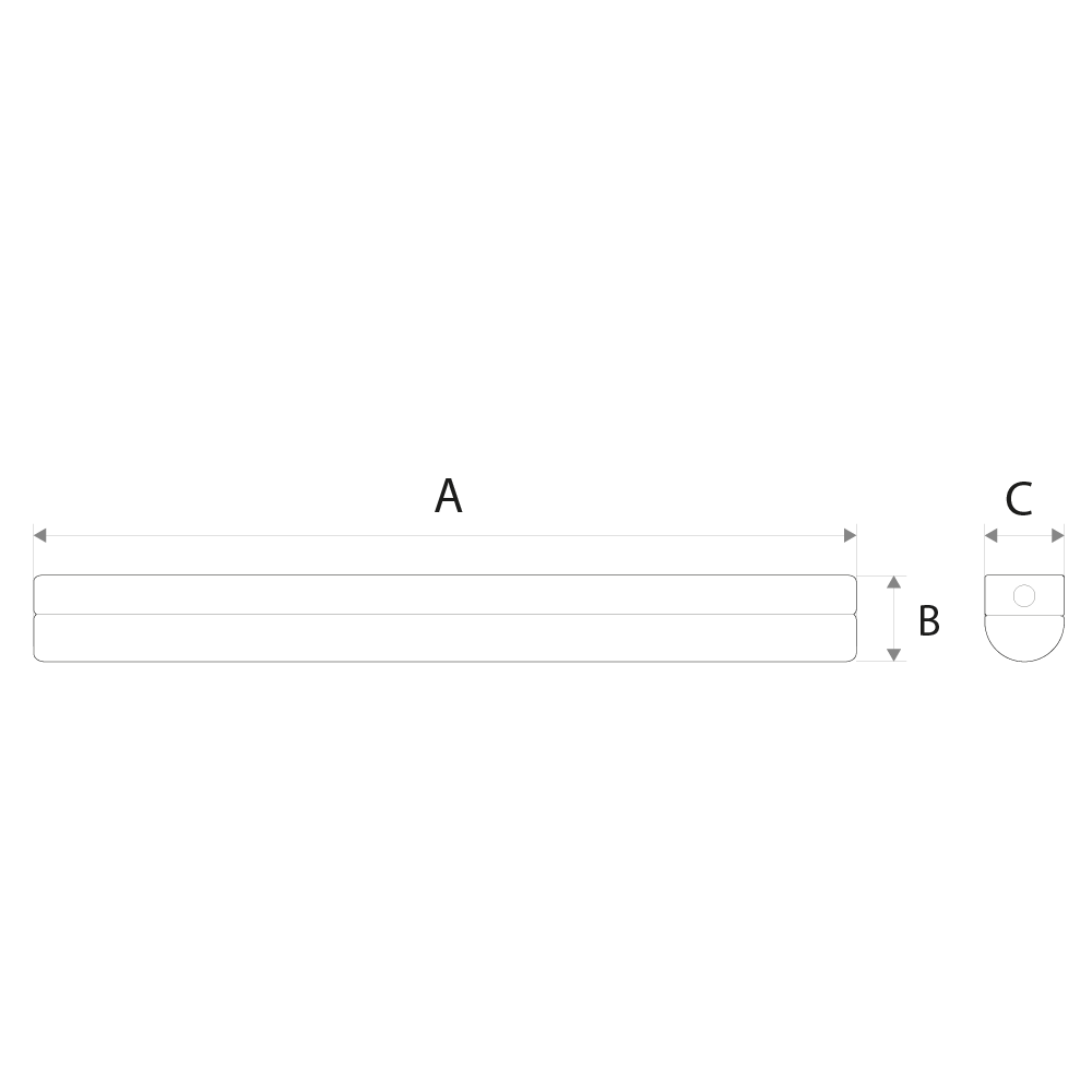 | Dimensões | 570mm (A) x 70mm (B) x 65mm (C) |