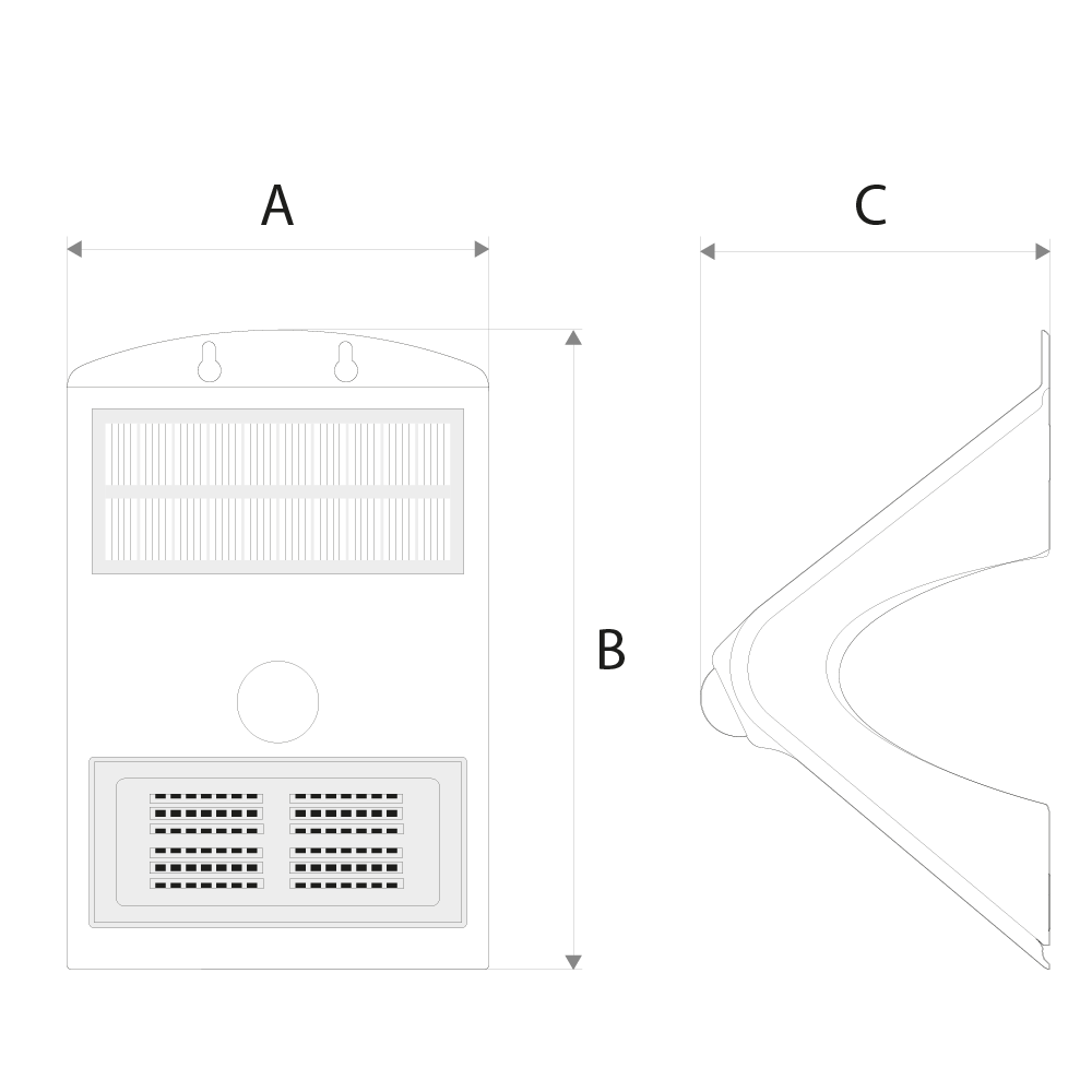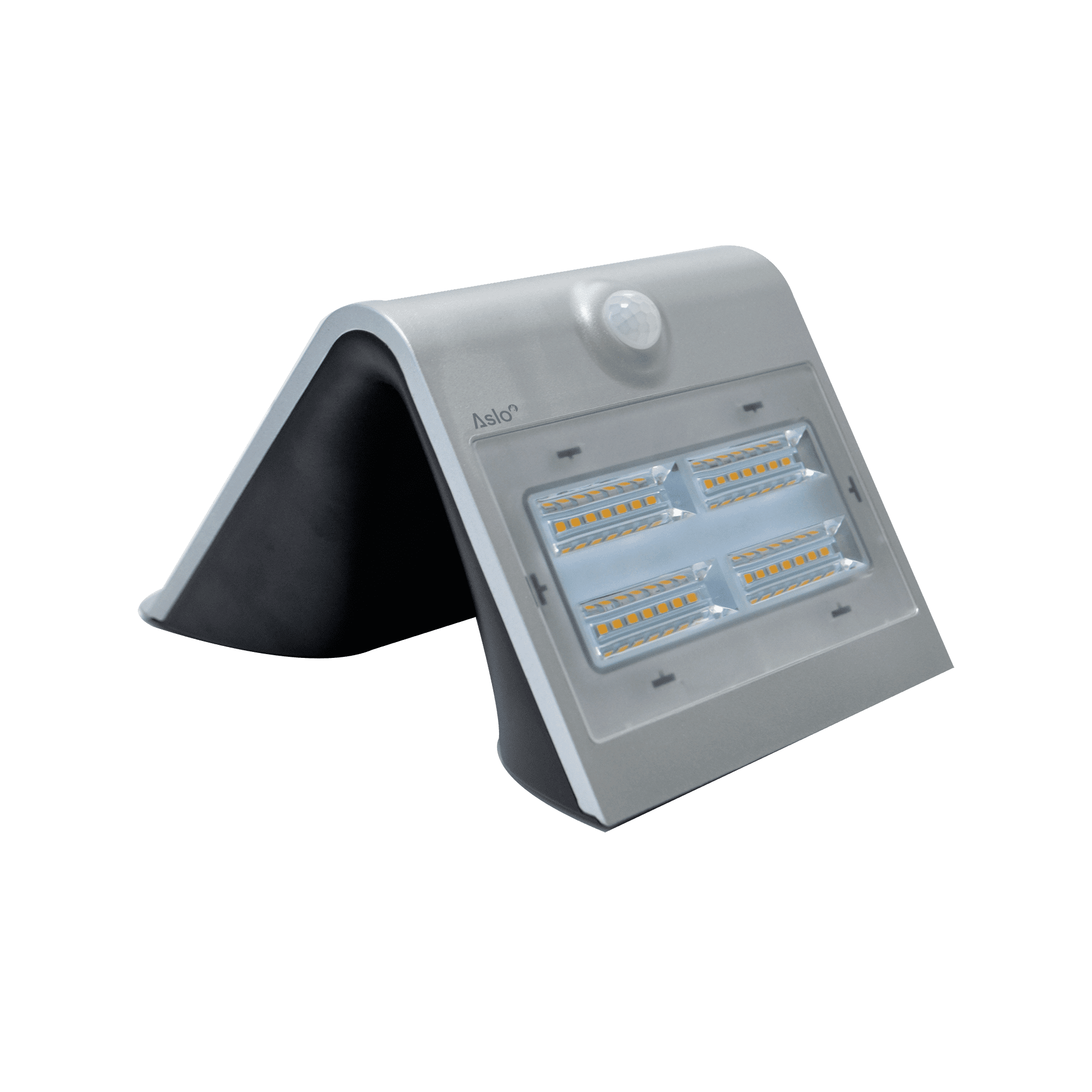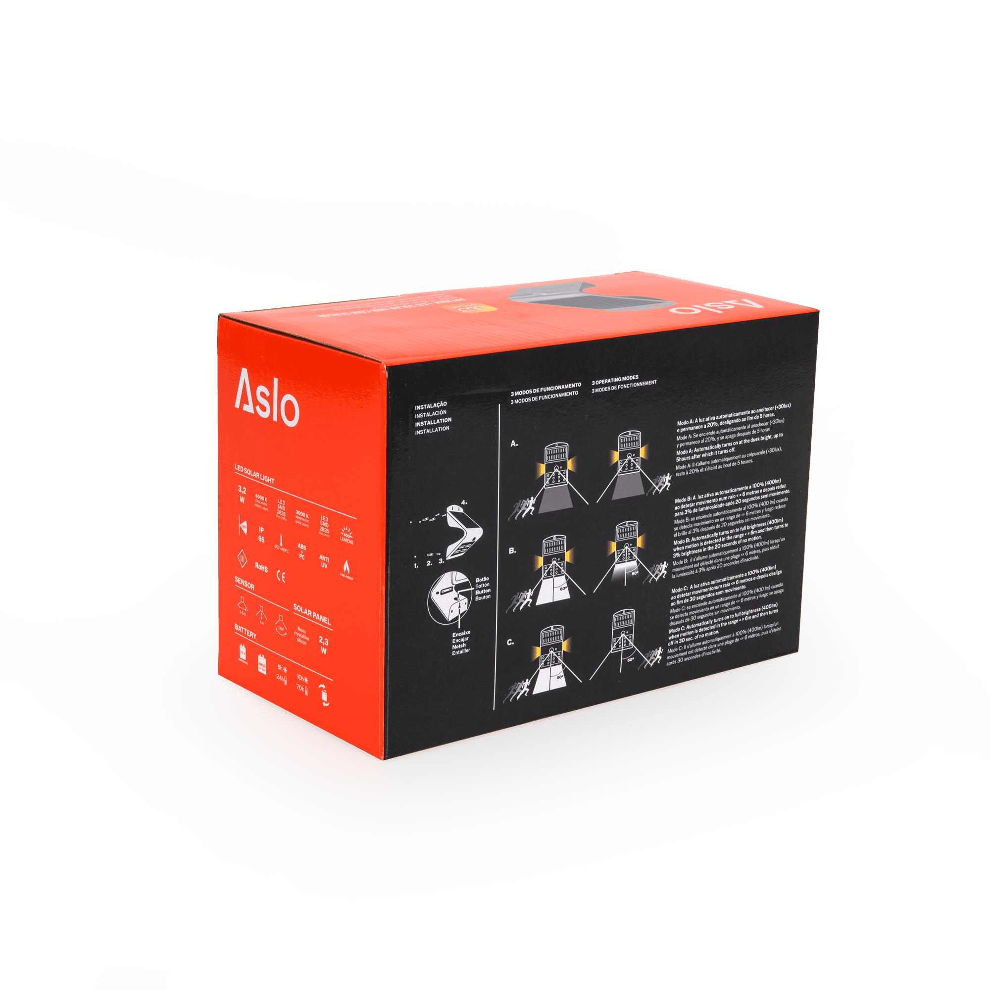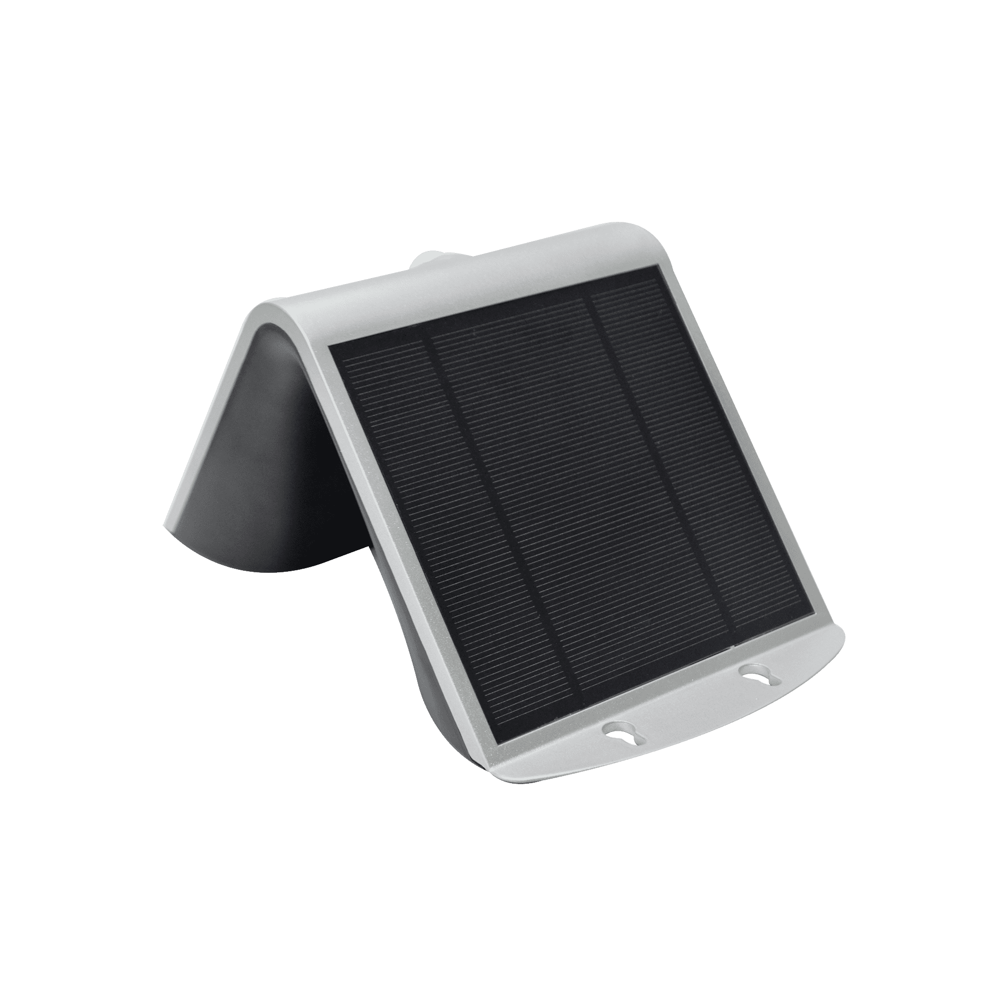 Aplique solar com design funcional para iluminação exterior. Fabricado em ABS com lente em policarbonato e proteção contra raios UV. Equipado com painel monocristalino de 2,3W e bateria de iões de lítio substituível (2000mAh), proporciona até 70h de autonomia. Oferece modos de funcionamento com variações de brilho e desligamento automático. Índice de proteção IP65, que significa proteção total contra poeiras e jatos de água, ideal para uso exterior. Dimensões: 140x212x109 mm. Classe de isolamento: I.