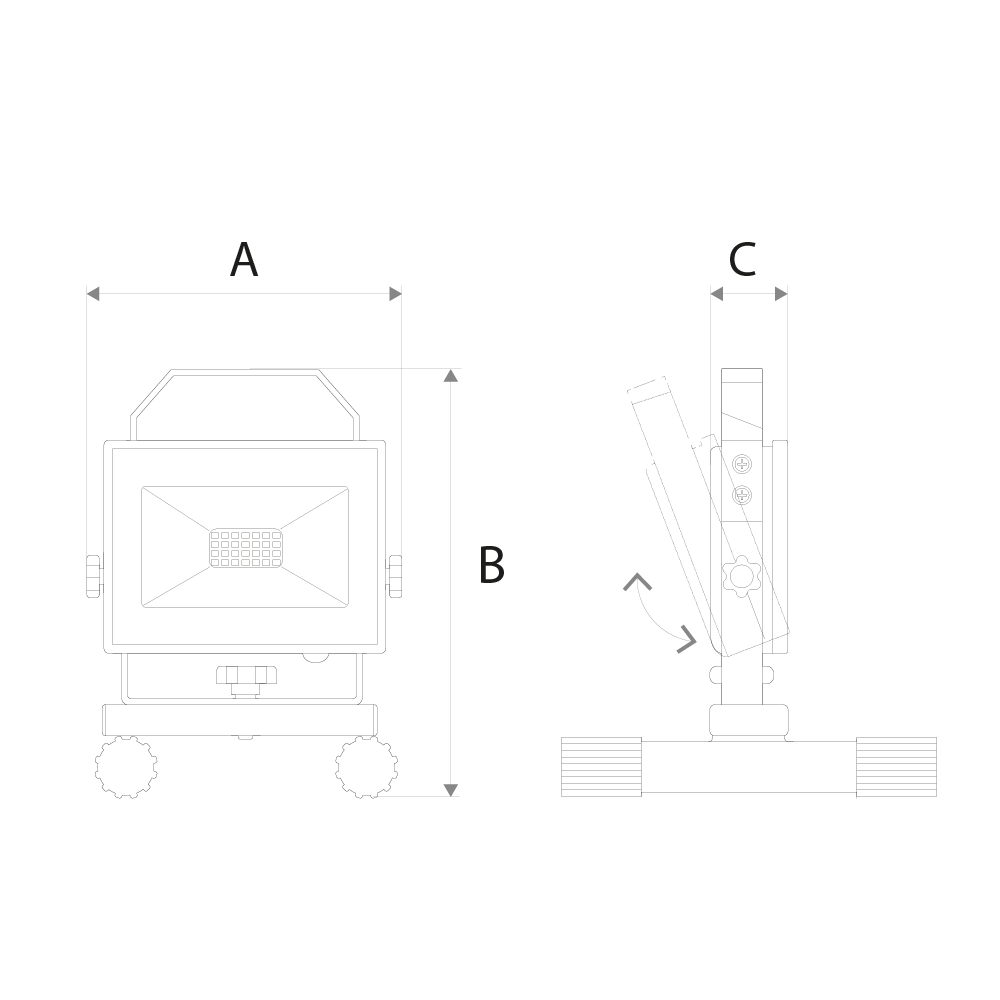 Projetor portátil ideal para uso em interiores e exteriores protegidos. Equipado com LED SMD 2835, estrutura em alumínio e policarbonato, difusor em vidro temperado e base estável com rotação 360°. Ângulo de abertura de 120°, autonomia até 3 horas e índice de proteção IP65 (proteção total contra poeiras e jatos de água). Classe de isolamento II. Inclui carregador.