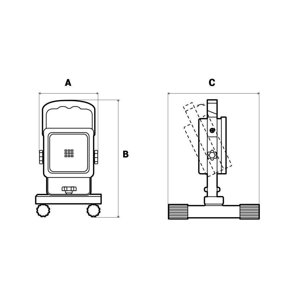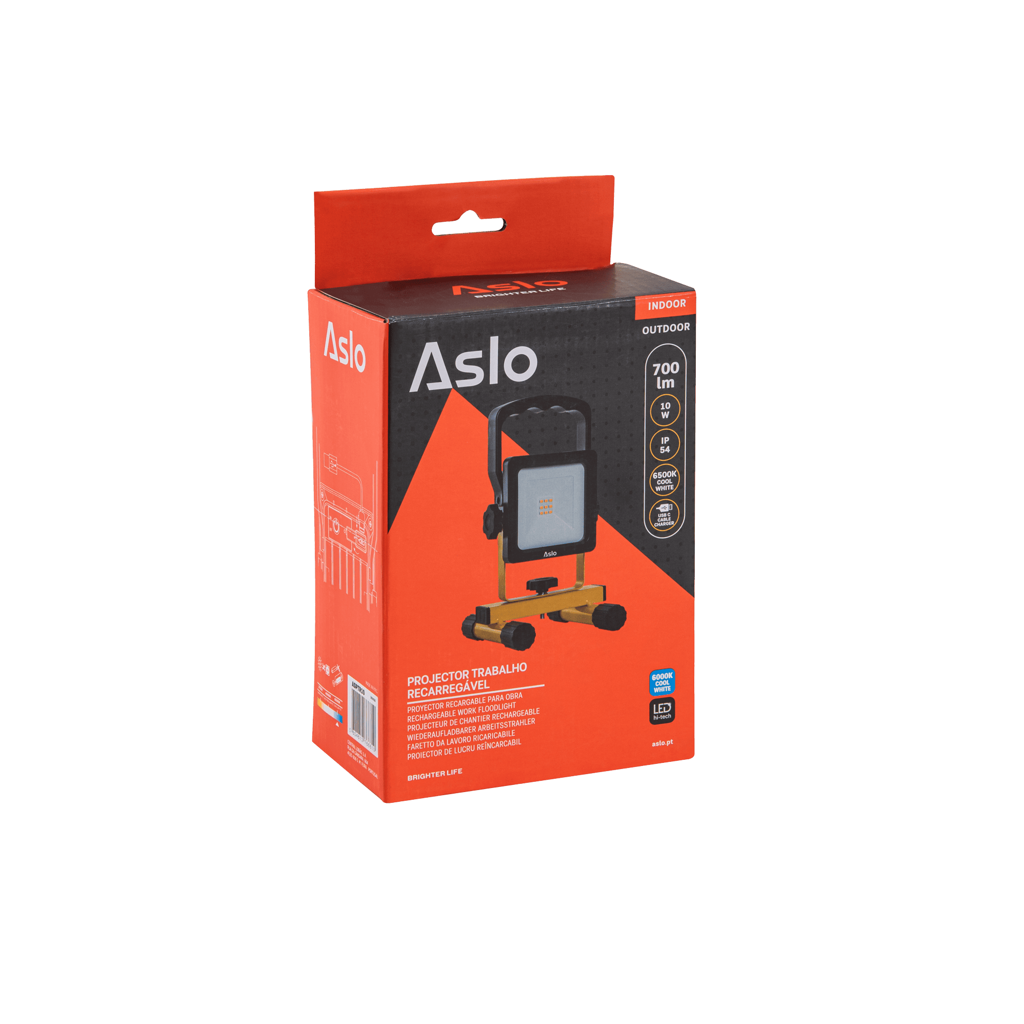 O funcionamento a bateria elimina a necessidade de cabos durante a utilização, proporcionando liberdade total de posicionamento. O sistema de ajuste permite a rotação completa de 360º e inclinação do feixe luminoso de 0 a 90º, possibilitando orientar a luz com precisão, à semelhança de uma lanterna de trabalho. A temperatura de cor de 6500K fornece luz branca fria, adequada para tarefas que exigem boa visibilidade. Equipado com tecnologia LED SMD, disponibiliza um fluxo luminoso com um ângulo de abertura de 120° para iluminação ampla. A bateria de lítio recarregável é carregada através de cabo USB-C incluído, com tempo de carregamento entre 3 e 4 horas. A estrutura em ABS com difusor em policarbonato assegura resistência ao uso profissional. O suporte ajustável e a base metálica permitem fixação estável em diferentes superfícies. Com proteção IP54 e resistência ao impacto IK06, é indicado para utilização profissional em ambientes interiores e exteriores.