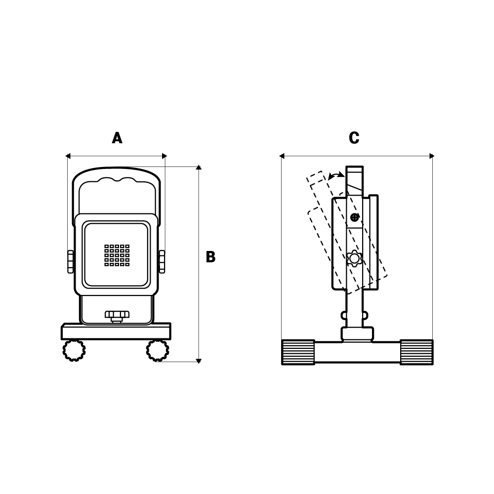O funcionamento a bateria elimina a necessidade de cabos durante a utilização, proporcionando liberdade total de posicionamento. O sistema de ajuste permite a rotação completa de 360º e inclinação do feixe luminoso de 0 a 90º, possibilitando orientar a luz com precisão, à semelhança de uma lanterna de trabalho. A temperatura de cor de 6500K fornece luz branca fria, adequada para tarefas que exigem boa visibilidade. Equipado com tecnologia LED SMD, disponibiliza um fluxo luminoso com um ângulo de abertura de 120° para iluminação ampla. A bateria de lítio recarregável é carregada através de cabo USB-C incluído, com tempo de carregamento entre 3 e 4 horas. A estrutura em ABS com difusor em policarbonato assegura resistência ao uso profissional. O suporte ajustável e a base metálica permitem fixação estável em diferentes superfícies. Com proteção IP54 e resistência ao impacto IK06, é indicado para utilização profissional em ambientes interiores e exteriores.