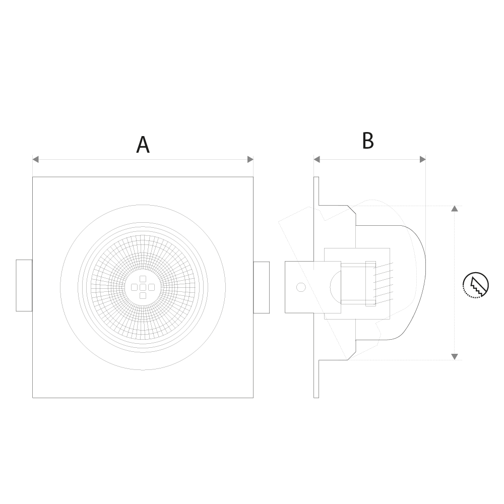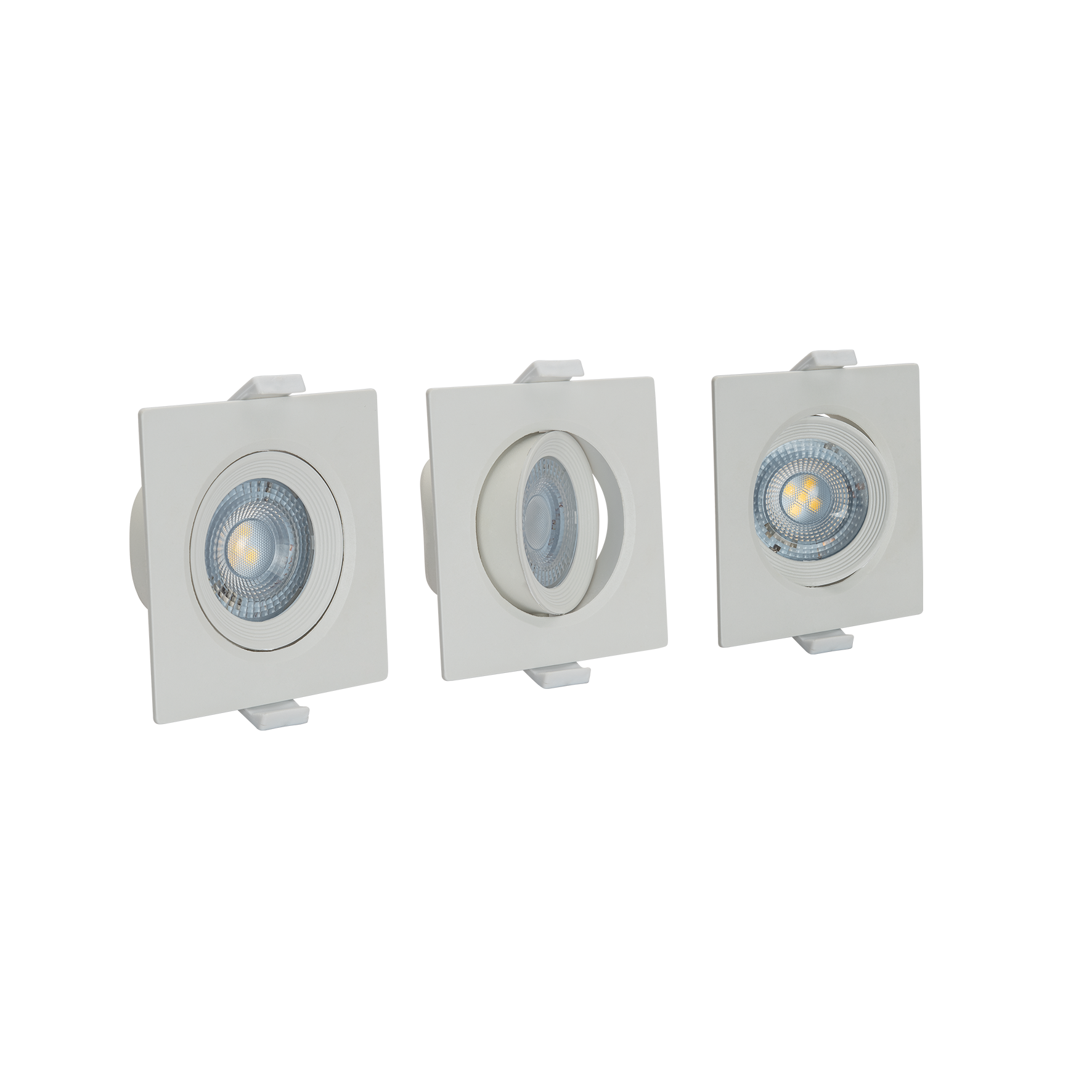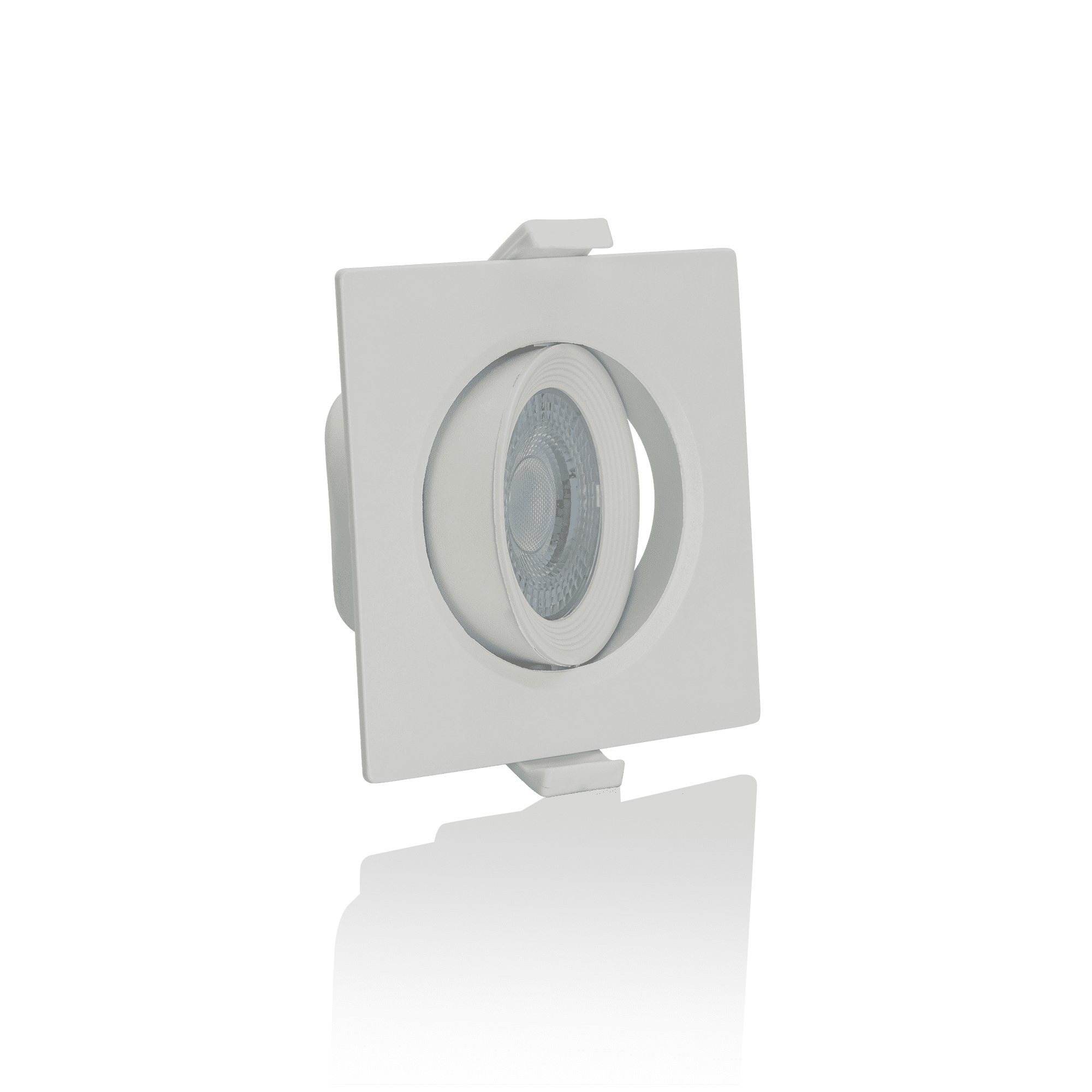Com corpo em PBT e proteção IP40, este downlight quadrado basculante integra LED SMD 2835 e proporciona um fluxo luminoso útil de 600lm. Inclui ângulo de 38° e instalação simples em tetos falsos.