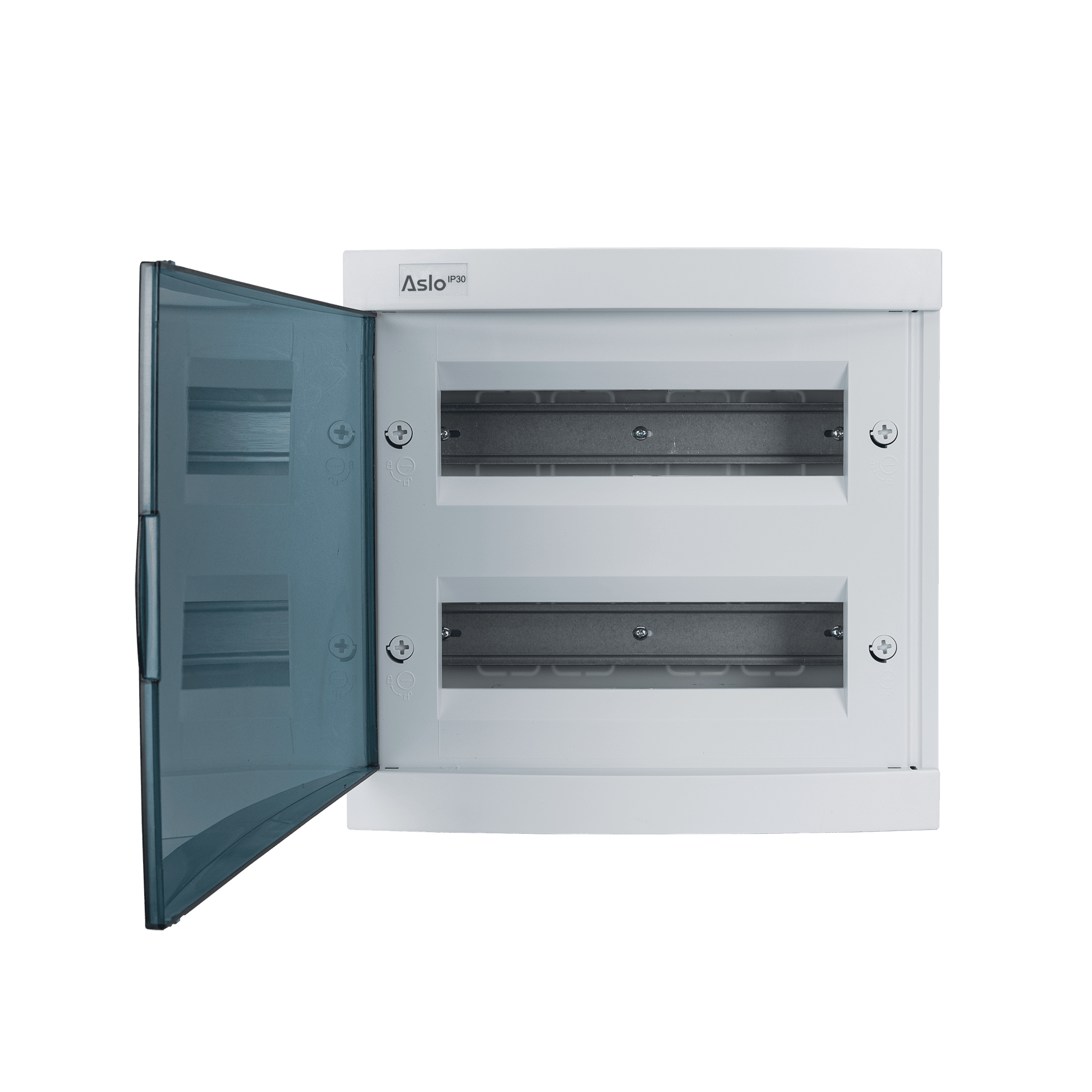 Os quadros de distribuição embutidos da ASLO com porta transparente lateral são ideais para instalações organizadas e discretas em paredes. Com capacidade modular elevada e barramentos incluídos, permitem uma instalação elétrica segura, prática e eficiente. A porta lateral facilita o acesso aos componentes internos, enquanto o design robusto e a proteção IP30 asseguram durabilidade em ambientes interiores.