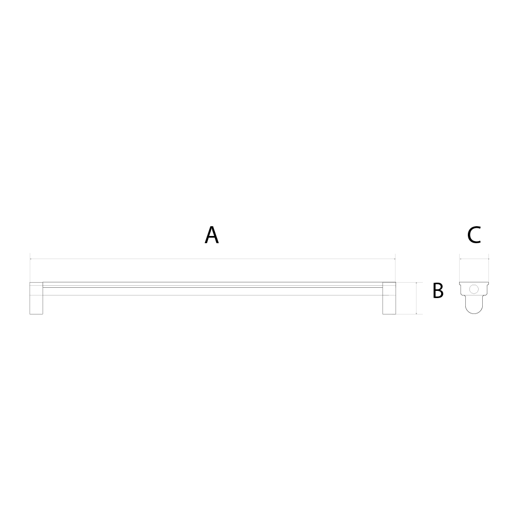 | Dimensões | 1500mm (A) x 44mm (B) x 33mm (C) |