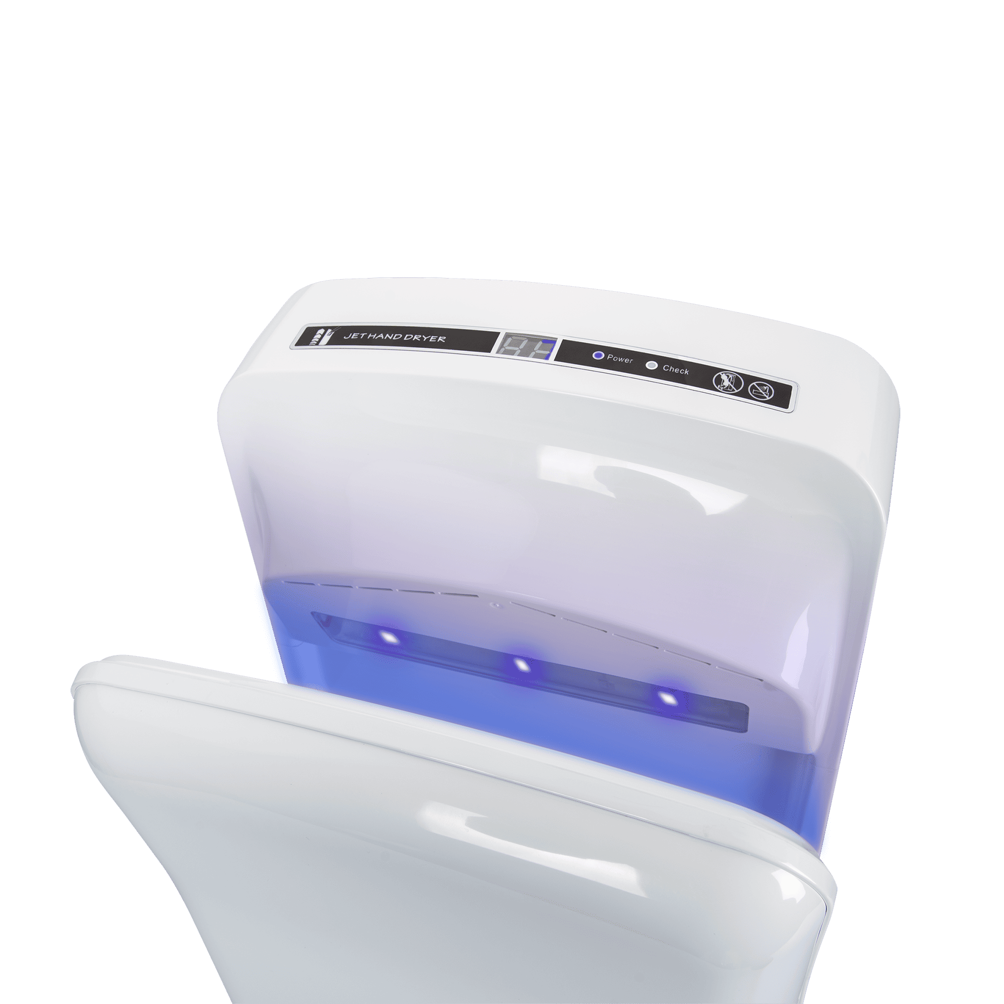 O secador de mãos jato duplo é um dispositivo avançado, ideal para ambientes que exigem eficiência e higiene, como hotéis, escritórios, restaurantes e hospitais. Equipado com um motor de 800W que atinge 21.000 rpm, este secador oferece um jato de ar duplo a 95 m/s, garantindo uma secagem rápida entre 5 e 7 segundos. A ativação automática por sensor elimina a necessidade de contacto, promovendo uma experiência mais higiénica. Com índice de proteção IPX4, é resistente a salpicos de água, e a sua construção em ABS e aço inoxidável 304 assegura durabilidade e resistência ao vandalismo. O design moderno é complementado por uma luz LED azul que acende durante o uso. O tanque de drenagem e o filtro de ar facilitam a manutenção, enquanto o baixo consumo energético e o nível de ruído de 72 dB tornam-no uma escolha sustentável e confortável. Com tensão nominal de 220V AC e corrente de 7.2A, este secador é uma solução eficaz e económica para qualquer espaço público.