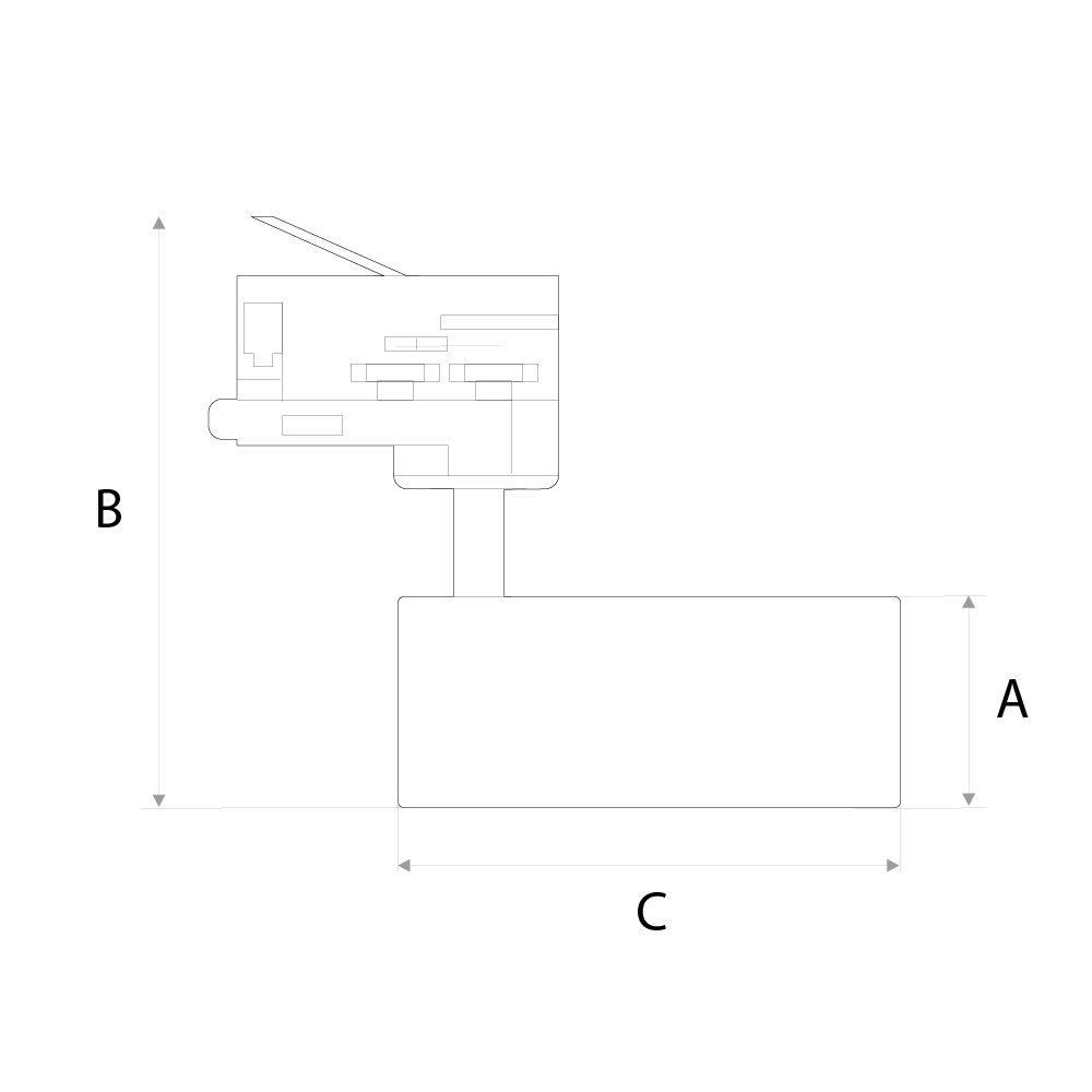 | Dimensões | 55mm (A) x 150mm (B) x 142mm (C) |