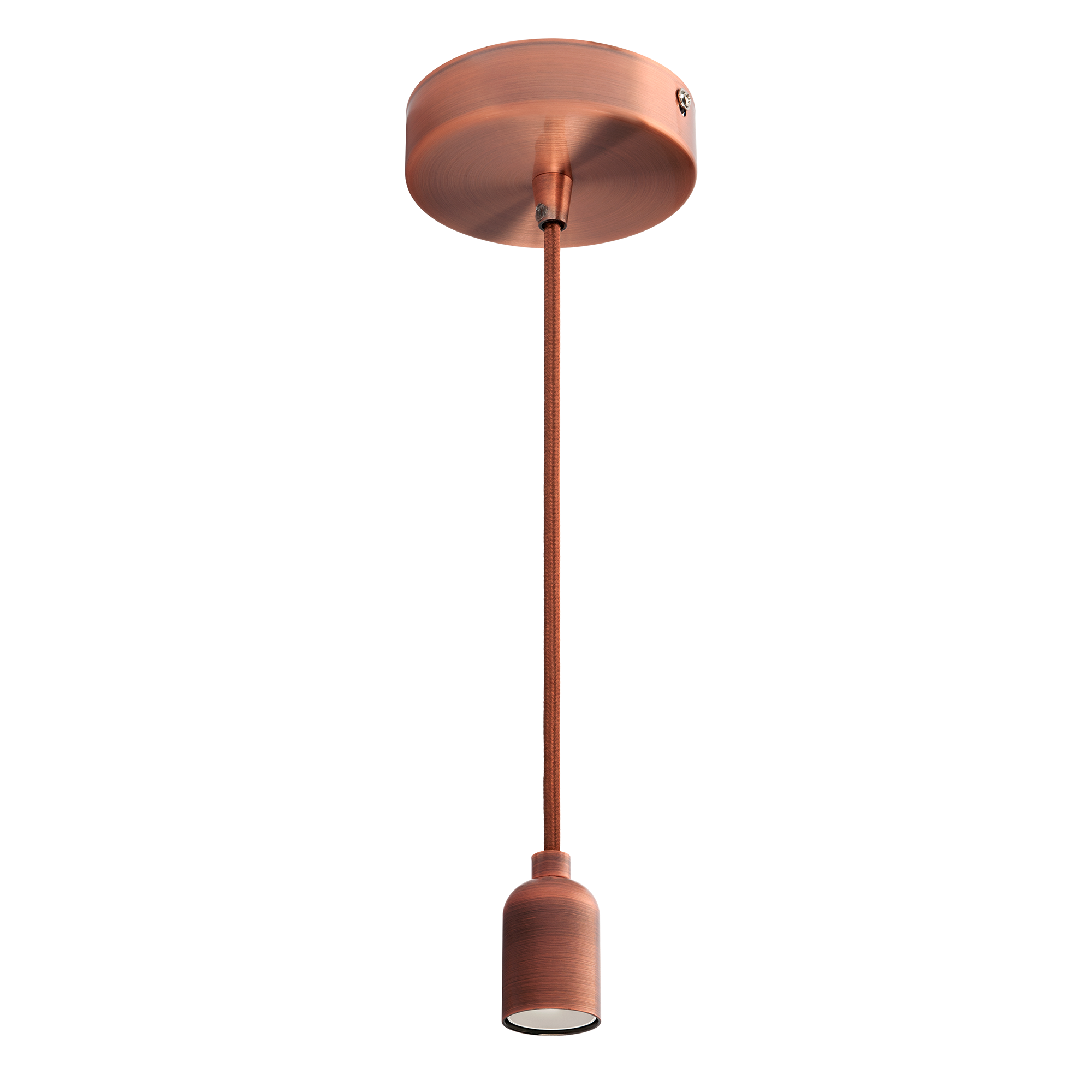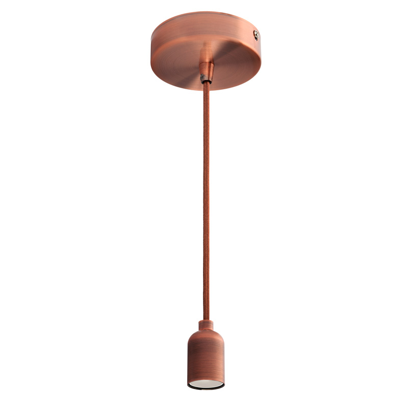 A suspensão metálica com suporte da série VINTAGE destaca-se pela sua estética refinada e versatilidade. Possui casquilho E27 com suporte metálico e cabo revestido a tecido com 1,5 metros para ajuste de altura. Compatível com lâmpadas até 60W (não incluída). Classe de isolamento I.