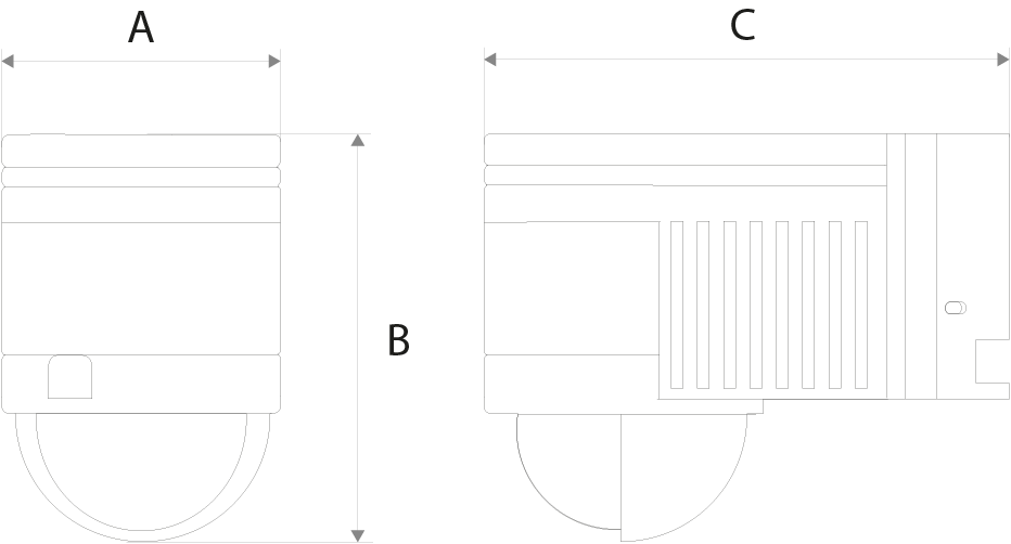 | Dimensões | 60mm (A) x 80mm (B) x 115mm (C) |