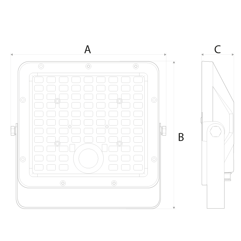 | Dimensões | 200mm (A) x 190mm (B) x 49mm (C) |